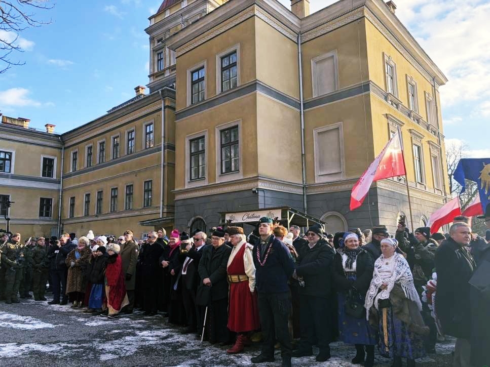 Następnie, przy udziale asysty honorowej Wojska Polskiego oraz rekonstruktorów historycznych, na dziedzińcu kończyckiego pałacu nastąpiła oficjalna prezentacja monumentu. Wiadomo, że pomnik pozostanie w Kończycach Wielkich trzy miesiące. – Liczę jednak, że będzie z nami dłużej. Kraków ma własne plany wobec rzeźby, ale jeśli ich projekt się opóźni, istnieje szansa, że król zostanie z nami do lata. Bardzo nam na tym zależy, bo wówczas moglibyśmy przygotować duże wydarzenie plenerowe połączone z husarską rekonstrukcją. To byłaby żywa lekcja historii, dumy z naszego kraju i patriotyzmu – podkreśla Marcin Lipski.