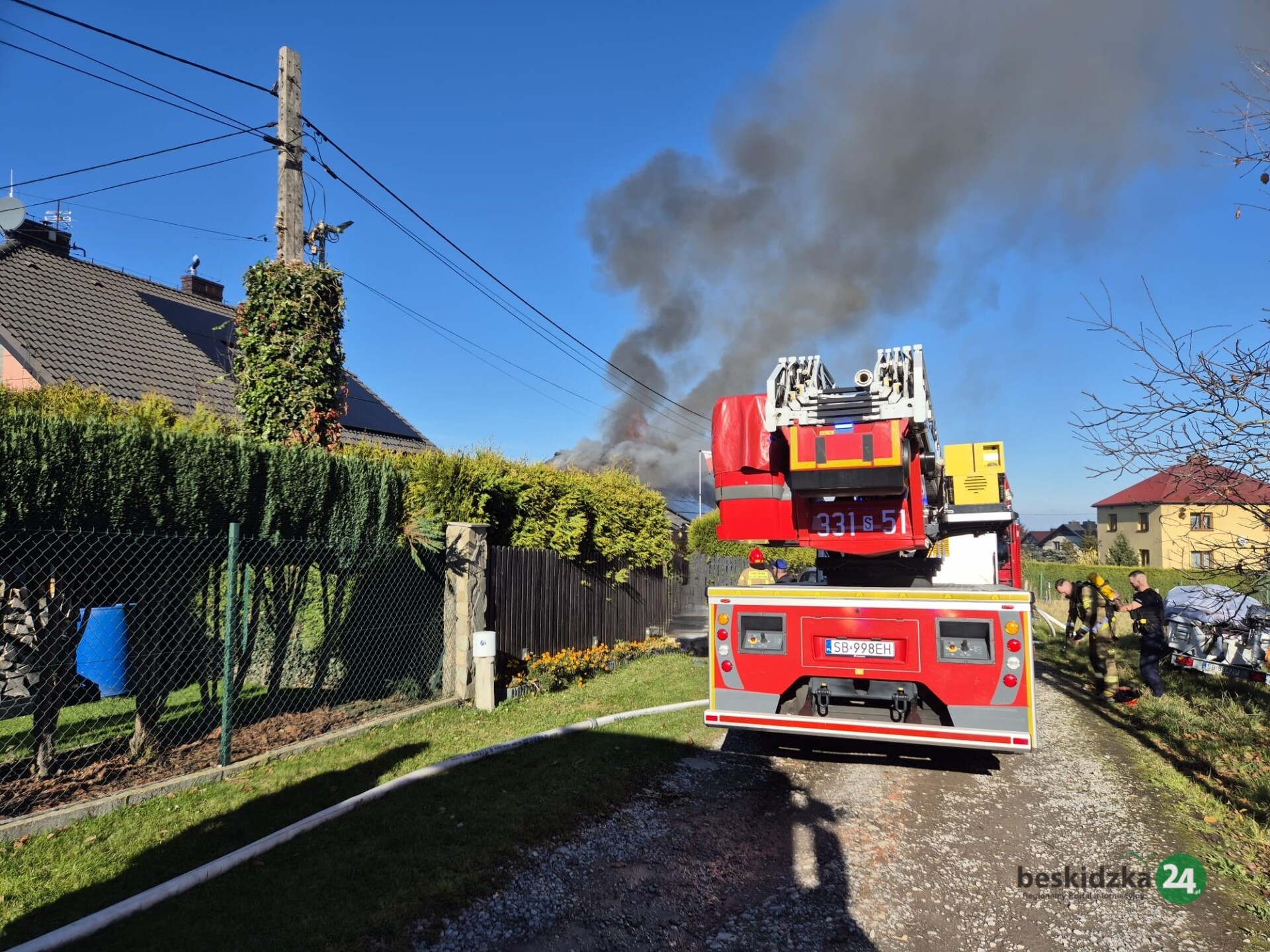 Pożar garażu w Hałcnowie. Dach spłonął, nikt nie ucierpiał