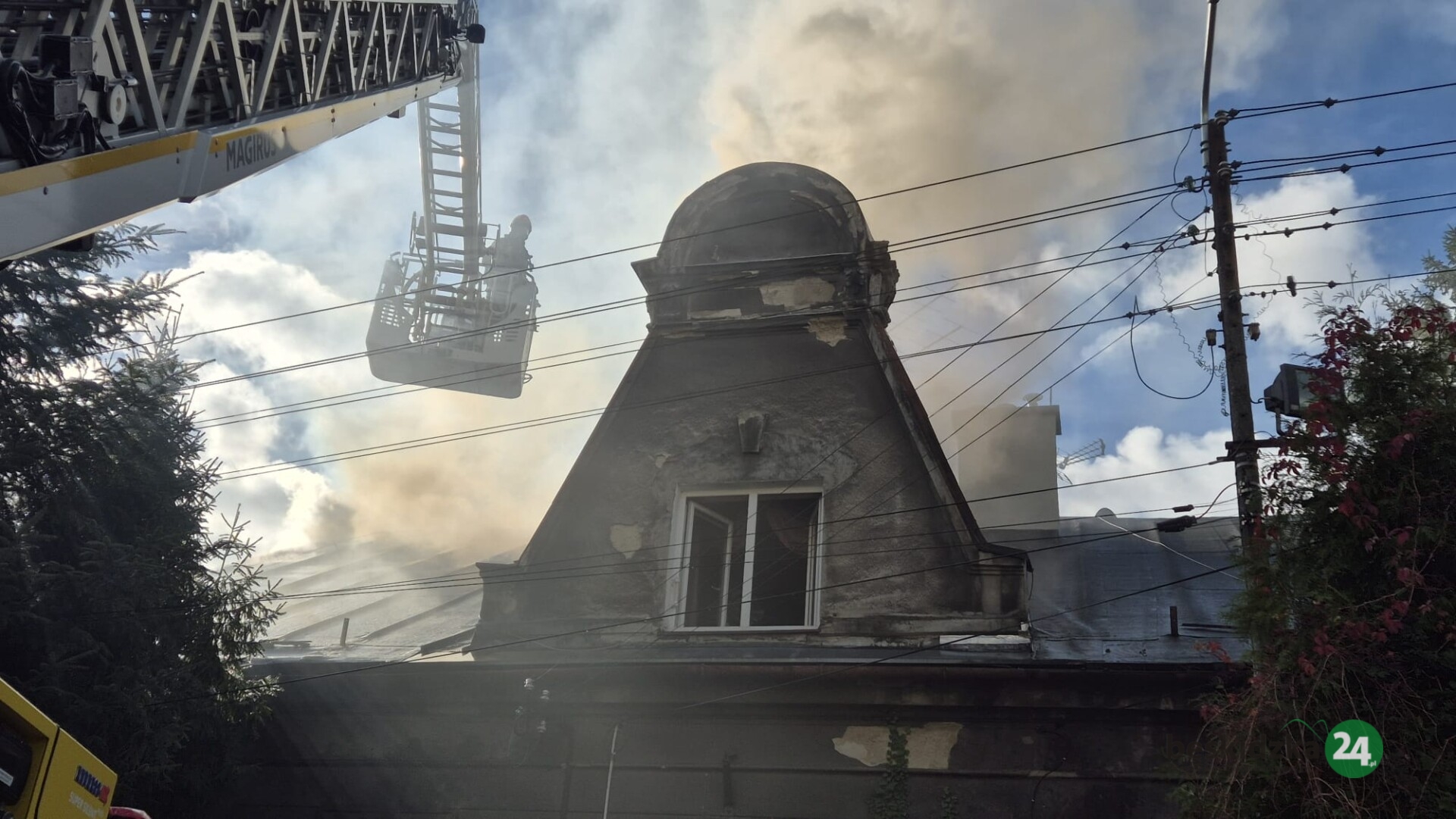 Trwa akcja gaśnicza przy ulicy Najświętszej Marii Panny Królowej Polski w Bielsku-Białej. Ogniem objęte jest poddasze budynku mieszkalnego znajdującego się naprzeciw kościoła.