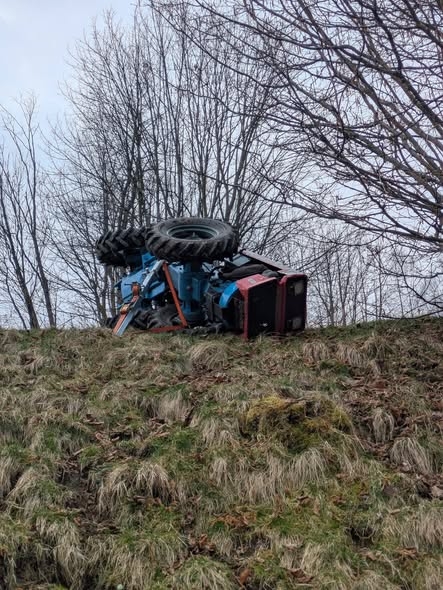 Jedna osoba została poszkodowana po tym, jak doszło do wywrotki pojazdu wolnobieżnego w Międzybrodziu Bialskim.