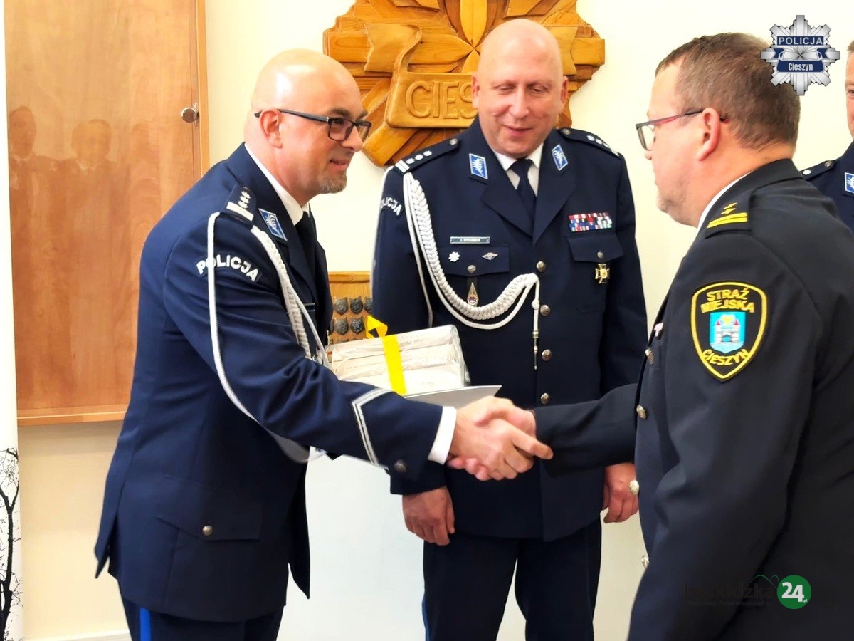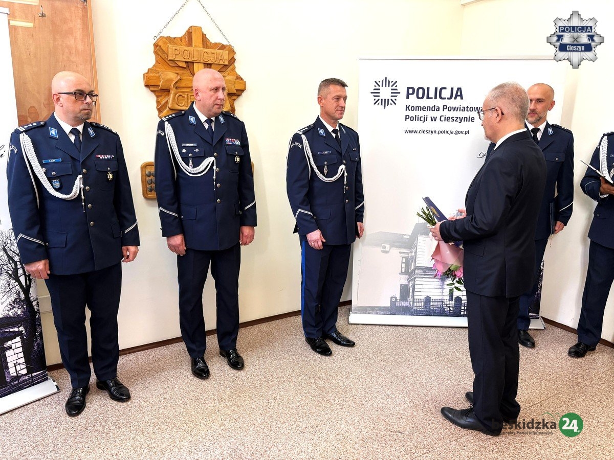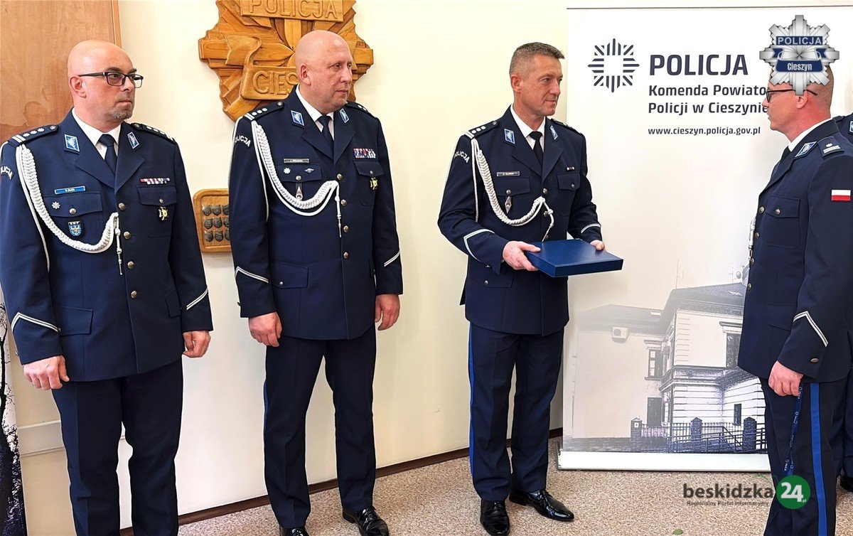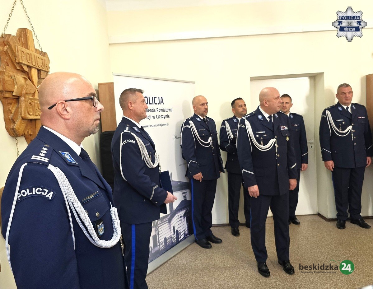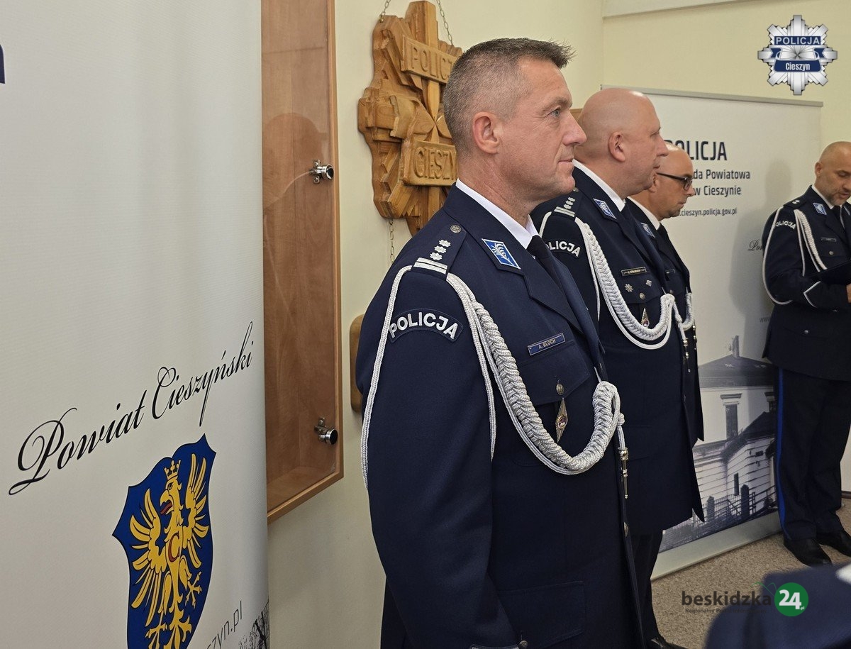W czasie uroczystości inspektor Dariusz Zajda podziękował przełożonym za okazane zaufanie oraz funkcjonariuszom i pracownikom cieszyńskiej komendy za dotychczasową służbę i gotowość do podejmowania codziennych wyzwań związanych z zapewnianiem bezpieczeństwa mieszkańcom powiatu cieszyńskiego.