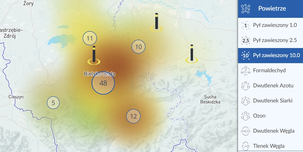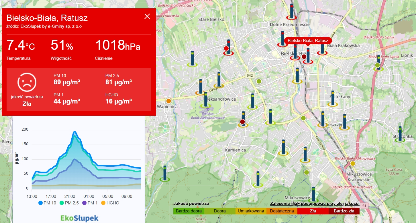 To, że tylko w powiecie żywieckim uruchomiono Alert RCB nie oznacza, iż w innych częściach regionu jest dużo lepiej. Złą jakość powietrza widać gołym okiem, a w części dzielnic Bielska-Białej słupki monitorujące jakość powietrza świecą na czerwono.