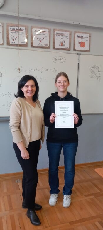 Dyplomy uznania za uzyskanie dobrego wyniku otrzymali natomiast: Alan Fuzakowski z klasy 1bc, Victoria Mańka z klasy 3a oraz Jakub Kwiecień z klasy 3b.