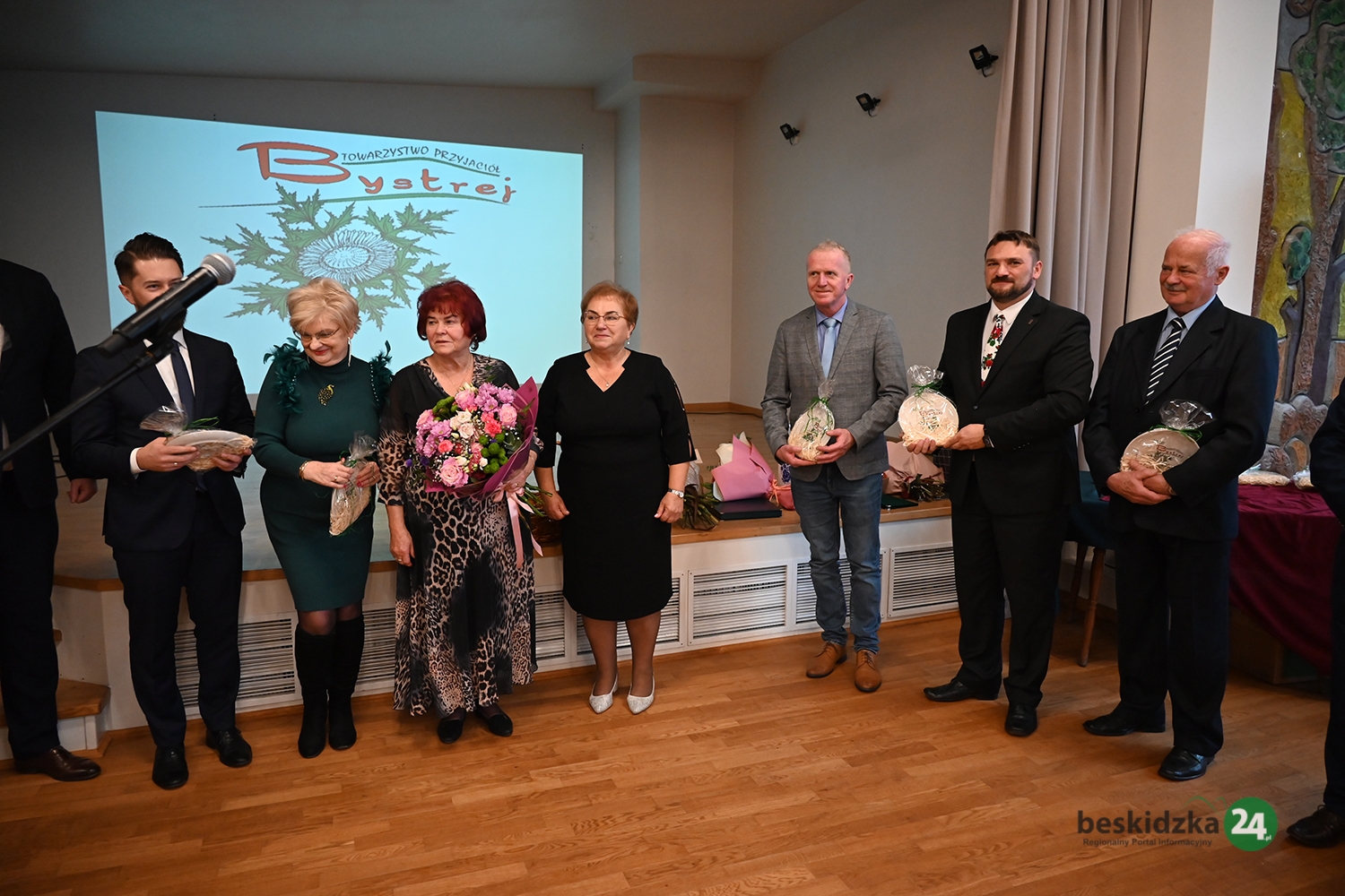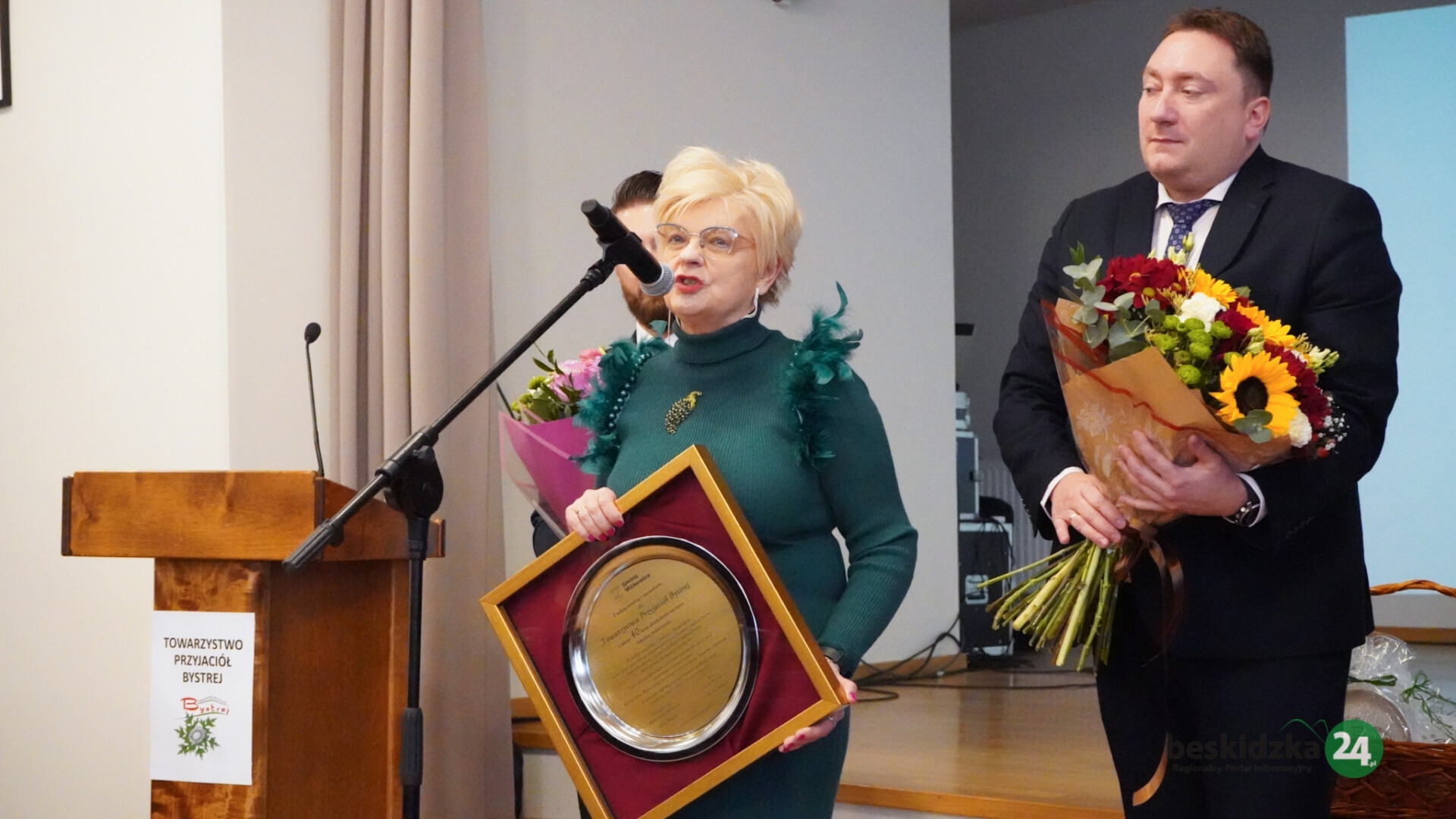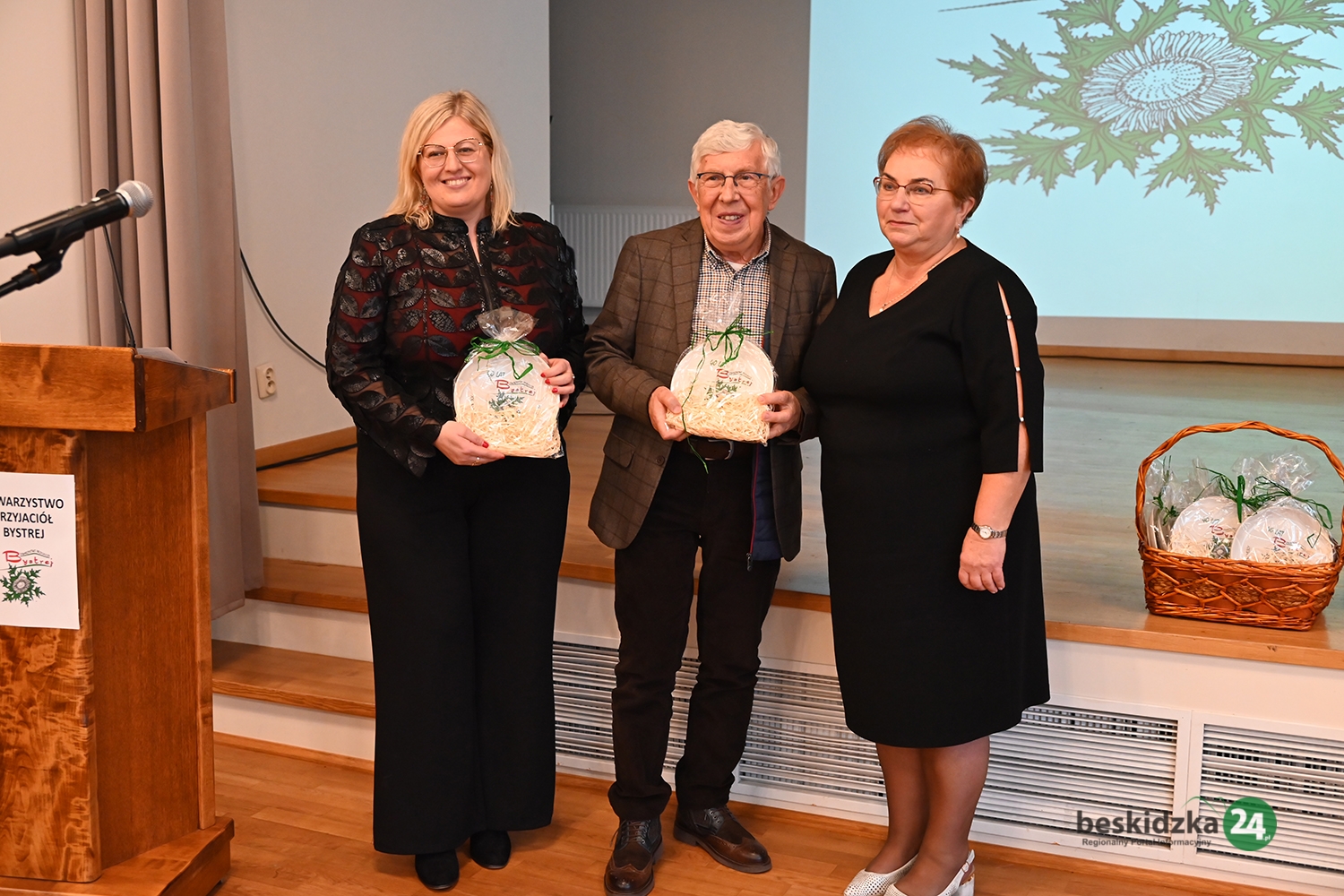 W dalszej części spotkania Prezes Towarzystwa Przyjaciół Bystrej Pani Małgorzata Wieczorek przedstawiła sprawozdanie z działalności organizacji na przestrzeni lat, a przy okazji Jubileuszu podziękowała wszystkim aktywnie działającym członkom Zarządu za zaangażowanie, poświęcony czas oraz wspólną realizację projektów, uroczystości i wydarzeń organizowanych przez TPB. Z kolei Zarząd TPB podziękował Jadwidze Kolarczyk – poprzedniej Prezes oraz obecnej Małgorzacie Wieczorek za otwartość, mądrość, wieloletnią konsekwencję i determinację w działaniach na rzecz naszej małej Ojczyzny, promowanie dziedzictwa kulturowego naszego regionu i kształtowanie tożsamości poprzez wydawane publikacje, książki, dbanie o miejsca pamięci wydarzeń i postaci historycznych. Na ręce Prezes Towarzystwa Przyjaciół Bystrej złożono gratulacje, życzenia, padło wiele ciepłych słów podziękowania za organizację wydarzenia, które jest pięknym świadectwem tego, jak silnie jesteśmy związani z historią naszego regionu, tradycją i miejscem, w którym żyjemy. Jak wiele potrafią dla niej zrobić ludzie, którzy z pasją, poświęceniem i głęboką troską angażują się w działalność społeczną.
