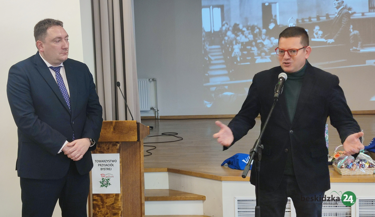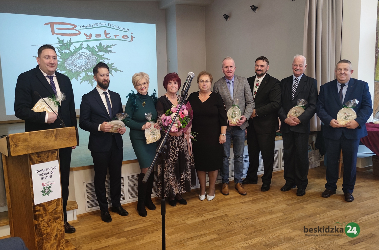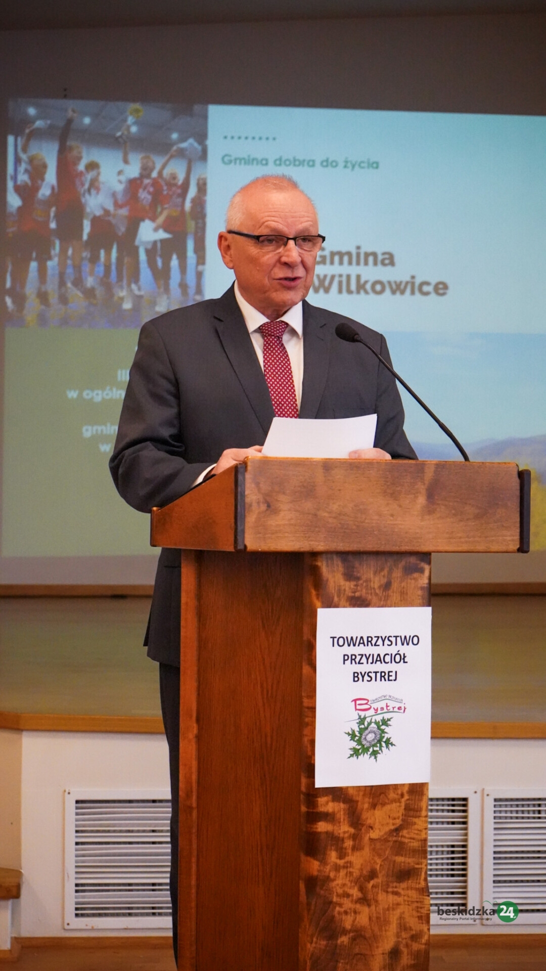 Tegoroczny XX Powiatowy Zjazd Towarzystw Regionalnych odbył się 15 listopada w Domu Strażaka w Bystrej. Organizatorem uroczystości było Towarzystwo Przyjaciół Bystrej, które w tym roku obchodzi jubileusz 40-lecia działalności, przy wsparciu Starosty Bielskiego i Wójta Gminy Wilkowice. Zjazd zgromadził reprezentacje wielu towarzystw działających w powiecie bielskim i zaproszonych gości, wśród których byli: Wiceminister Infrastruktury Przemysław Koperski, Senator Andrzej Kalata, Posłanka Małgorzata Pępek, poseł Przemysław Drabek, Starosta Bielski Andrzej Płonka, Przewodniczący Rady Powiatu Jan Borowski wraz z radnymi: Heleną Byrdy-Przybyłą, Adamem Caputą i Ryszardem Rączką, naczelnik WPPKSiT Magdalena Więzik. Nie zabrakło również włodarza Gminy Wilkowice Macieja Mrówki wraz z sekretarzem Wojciechem Cendrzakiem oraz Przewodniczącej Rady Gminy Aliny Macher z radnymi: Jackiem Chowańcem, Pawłem Handzlikiem, Piotrem Pieleszem i Piotrem Waleczkiem, prezesa OSP Bystra Grzegorza Gabora, który w tym roku został laureatem Nagrody Starosty Bielskiego im. Ks. Józefa Londzina, dyrektorów placówek kulturalno-oświatowych, bystrzańskich organizacji, reprezentacji Kręgu Starszyzny Harcerskiej w Mesznej, Kół Gospodyń w Bystrej i Wilkowicach oraz wszystkich członków Towarzystwa.