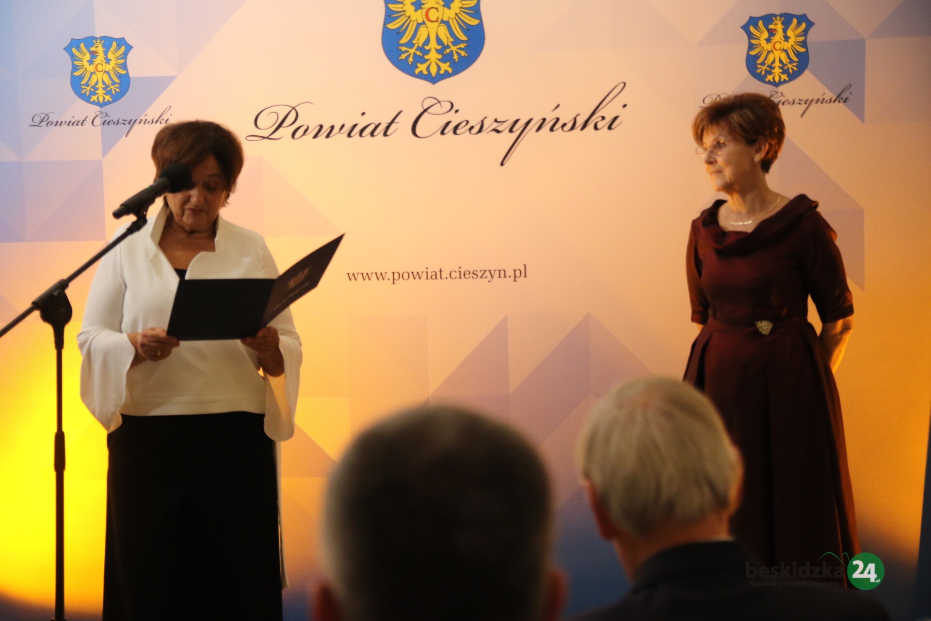 Laudacje odczytała Janina Żagan, starosta cieszyński, wręczając statuetki wraz ze Stanisławem Kubiciusem, przewodniczącym Rady Powiatu Cieszyńskiego.