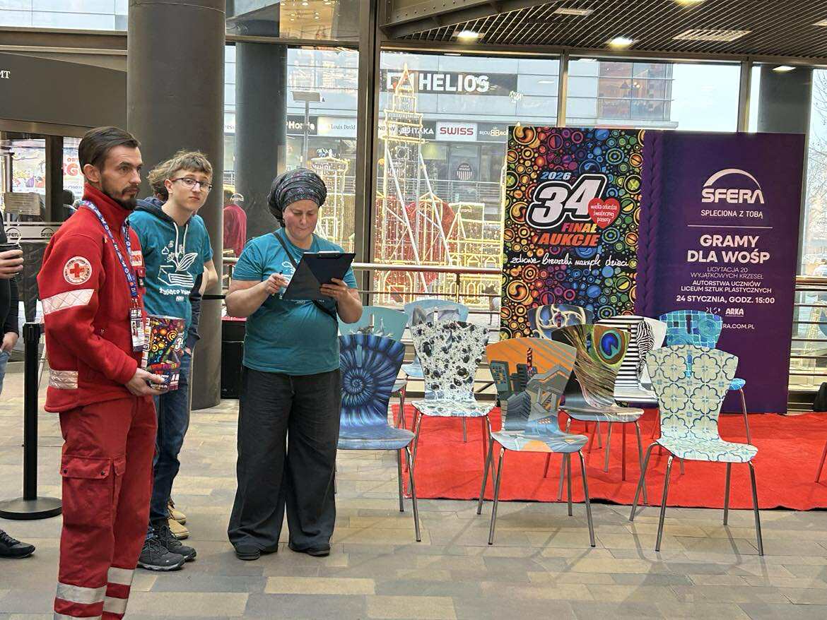 Dochód z aukcji trafił do dedykowanej puszki Sztabu WOŚP Grupy Ratownictwa PCK Bielsko-Biała. Wydarzenie odbyło się w ramach akcji „Licytacja Krzesła dla WOŚP 2026” i było efektem współpracy Fundacji Ekologicznej ARKA, Galerii Sfera, Liceum Plastycznego oraz wolontariuszy zaangażowanych w organizację przedsięwzięcia.