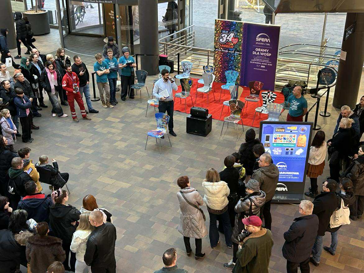 W Galerii Sfera w Bielsku-Białej odbyła się wyjątkowa licytacja charytatywna, podczas której w zaledwie 60 minut sprzedano krzesła będące unikatowymi dziełami sztuki. Efekt? Imponująca kwota 12 375 zł, która zasiliła konto Wielkiej Orkiestry Świątecznej Pomocy.
