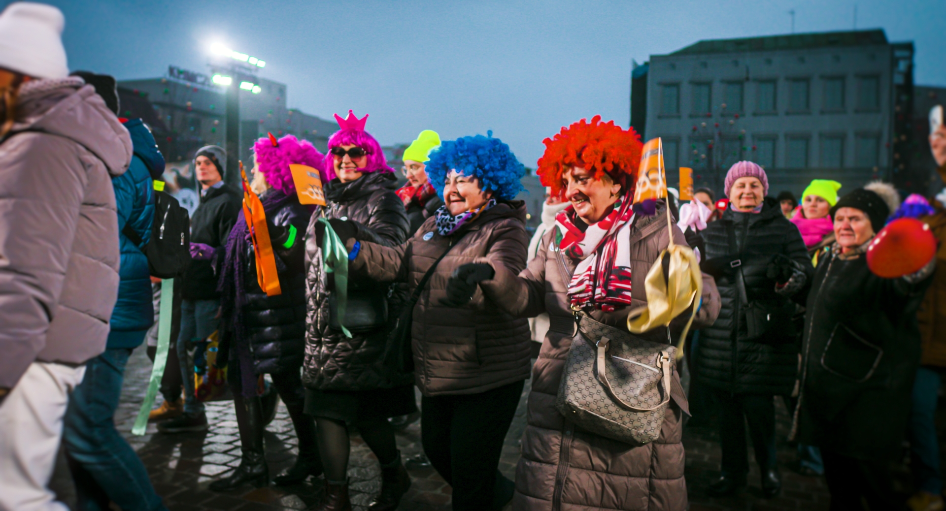 Świętowanie zaczęło się przed 16.00, kiedy z czterech różnych stron Bielska-Białej wyruszyły barwne pochody, by połączyć się na Placu Wojska Polskiego. Mieszkańcy chętnie dołączali do korowodów, a potem szczelnie wypełnili plac, na którym odbyło się uroczyste odtańczenie poloneza. W tańcu wzięła udział między innymi minister kultury Marta Cienkowska, prezydent miasta Jarosław Klimaszewski z małżonką Ewą i wiceprezydenci: Przemysław Kamiński, Adam Ruśniak i Igor Kliś. Tanecznym krokiem maszerowała także między innymi europoseł Mirosławę Nykiel, senator Agnieszka Gorgoń-Komor z mężem radnym Klaudiuszem Komorem, poseł Mirosław Suchoń czy marszałek Joanna Bojczuk z radnym wojewódzkim Marcinem Szarkiem oraz bielscy radni – Karol Markowski czy Konrad Łoś. Do tańca mogli się jednak włączyć – i chętnie to robili – wszyscy mieszkańcy i turyści zgromadzeni na placu.