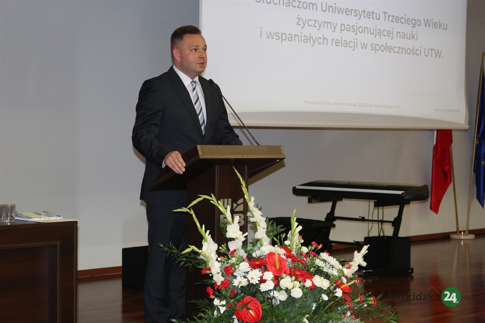 W imieniu władz miasta głos zabrał Przemysław Kamiński, wiceprezydent Bielska-Białej. – Bycie studentem to nie kwestia wieku, ale stanu ducha. Państwa energia i ciekawość świata są najlepszym dowodem, że nauka naprawdę nie ma granic – powiedział, życząc słuchaczom udanego roku i niegasnącej pasji.