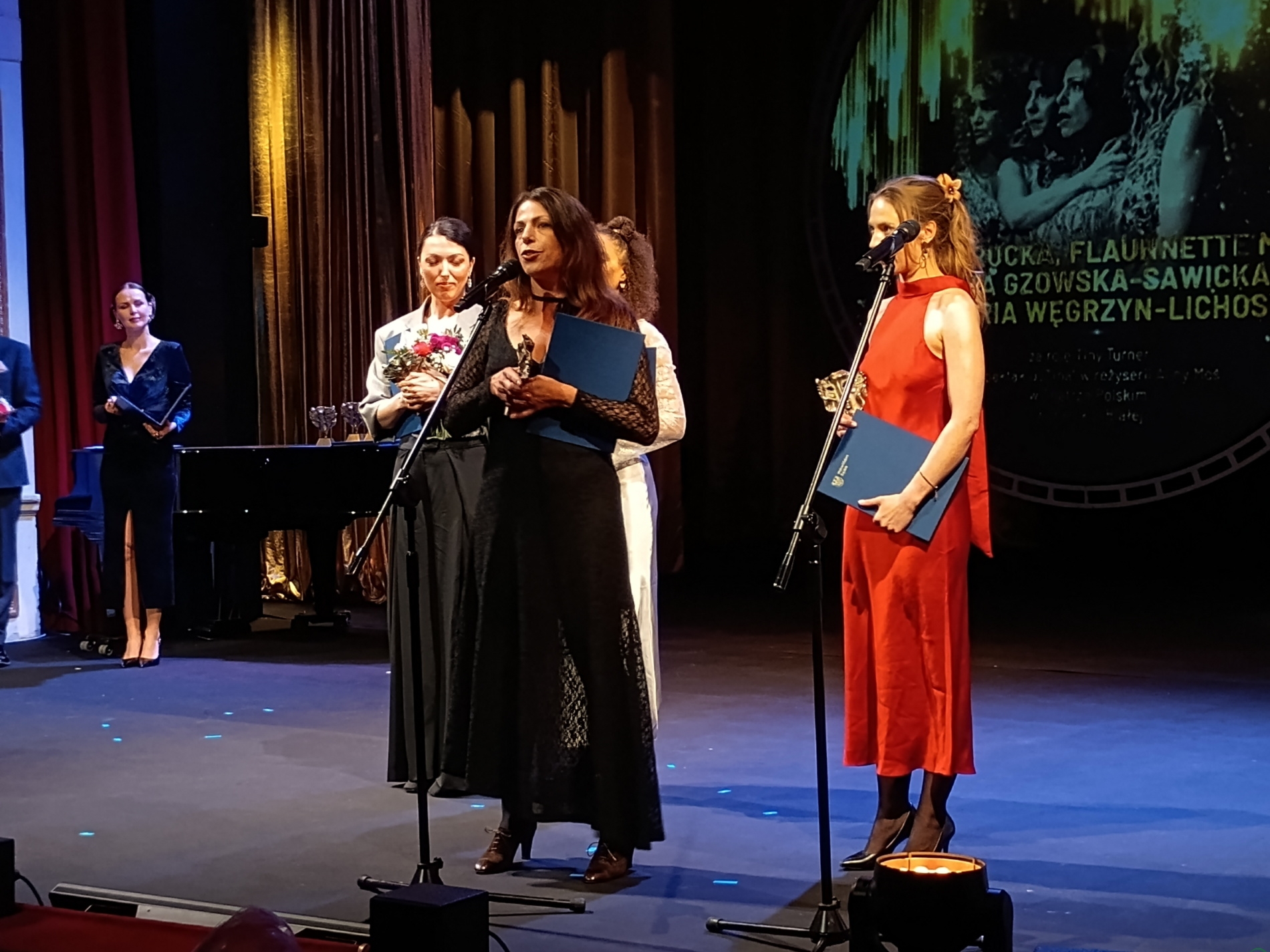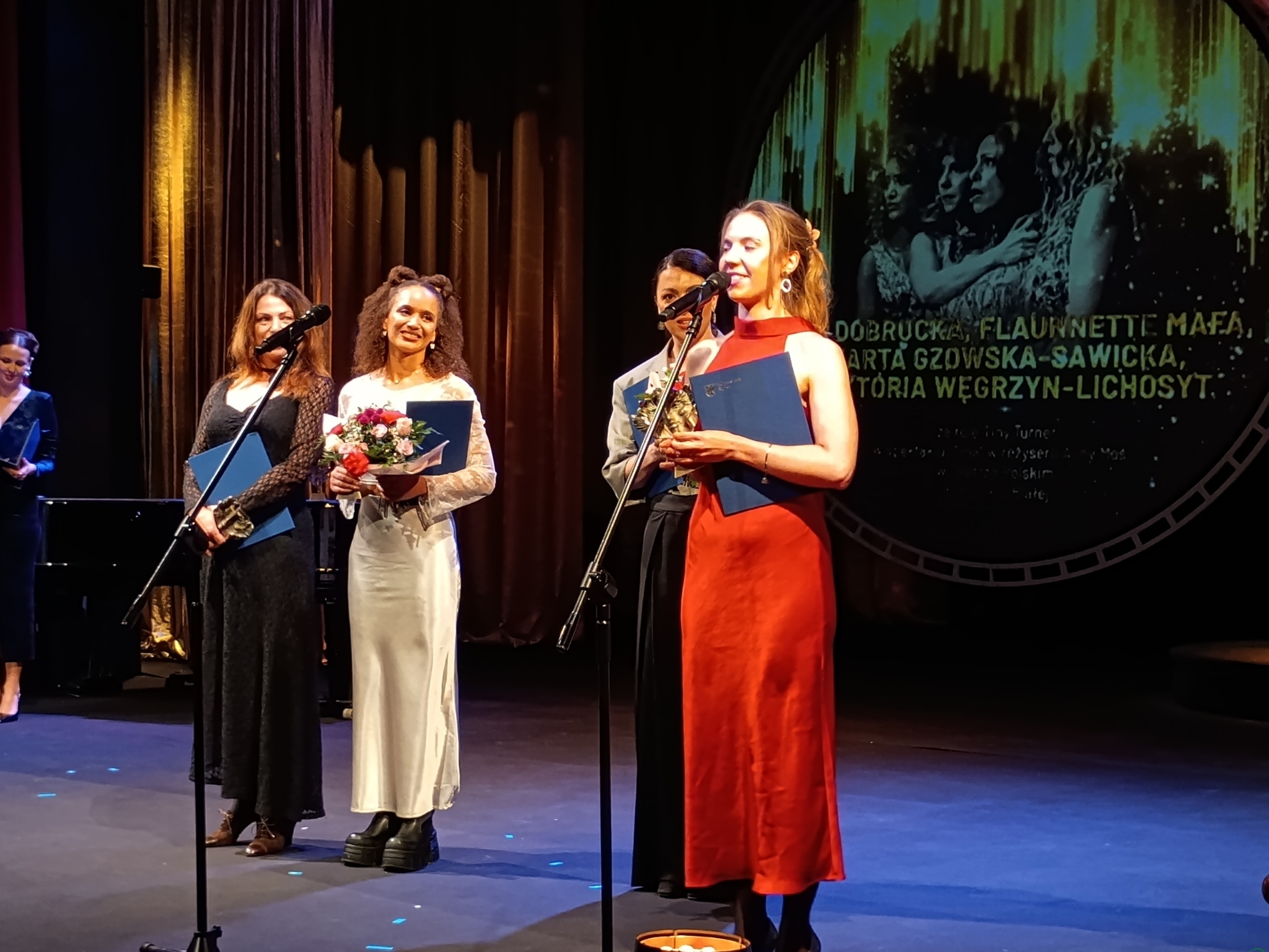 Nagrodę w kategorii aktorstwo za rolę wokalno-aktorską otrzymały cztery aktorki Teatru Polskiego w Bielsku-Białej: Ewa Dobrucka, Flaunnette Mafa, Marta Gzowska-Sawicka i Wiktoria Węgrzyn-Lichosyt za rolę Tiny Turner w spektaklu „Tina” w reżyserii Aliny Moś. – Bardzo dziękujemy za docenienie naszej ciężkiej pracy – mówiła Marta Gzowska-Sawicka. – Spektakl wpisuje się w bardzo ważny nurt interwencyjny w teatrze i opowiada o schemacie cyklu przemocy, której doświadczają po cichu miliony kobiet w Polsce i na świecie. Jeżeli możemy dołożyć cegiełkę do tego, aby ten skomplikowany cykl przemocy naświetlić i dać iskrę nadziei ludziom, którzy tkwią latami w takich relacjach, to teatr nabiera jeszcze więcej sensu. – Dziękujemy naszej reżyserce Alinie Moś i wszystkim twórcom tego spektaklu – dodała Wiktoria Węgrzyn-Lichosyt. – Kocham teatr i róbmy teatr o rzeczach ważnych – dorzuciła Ewa Dobrucka.
