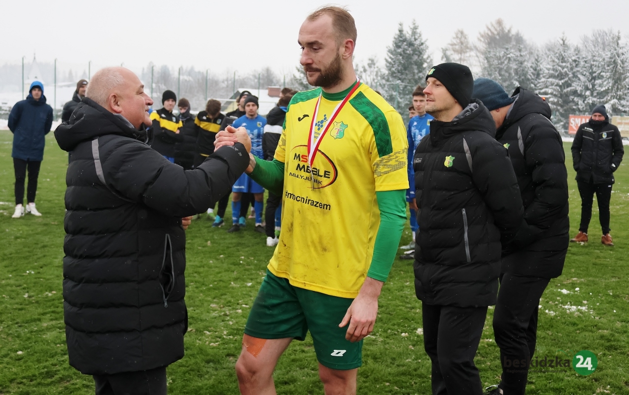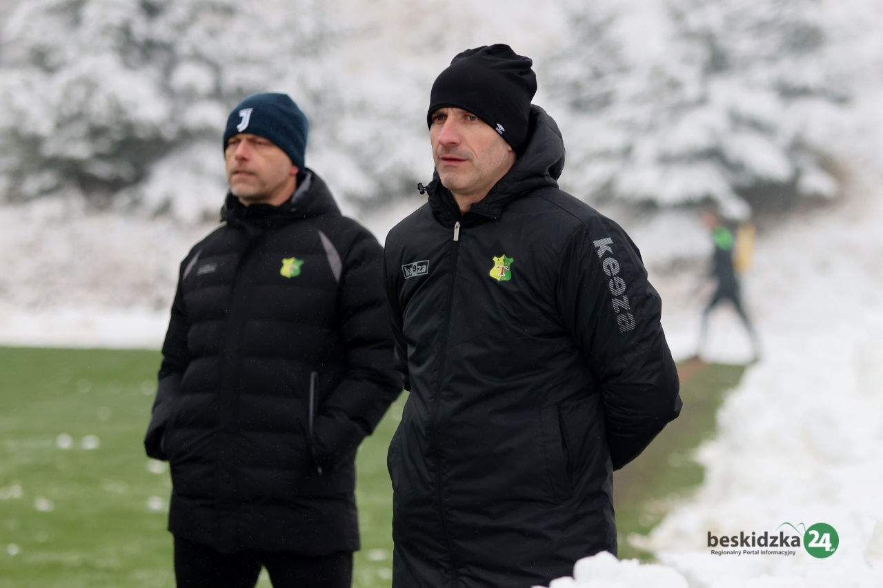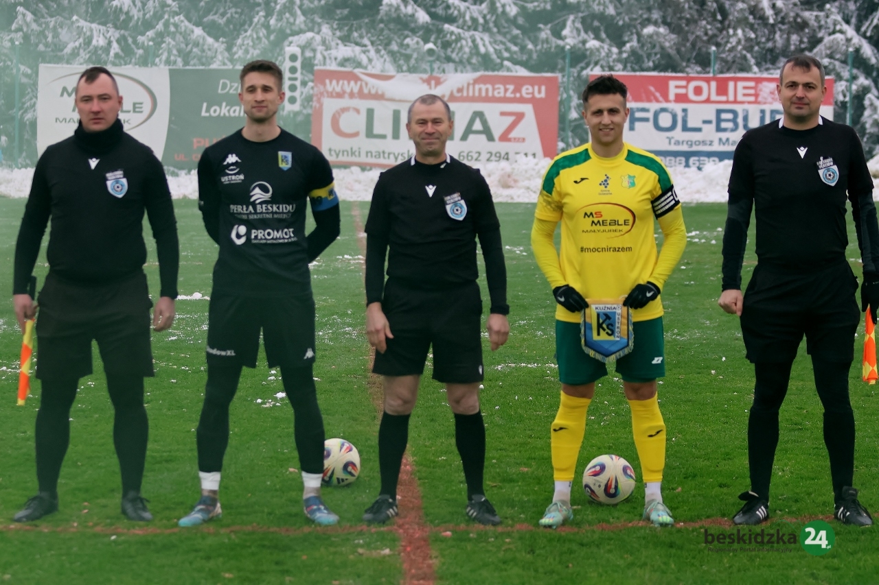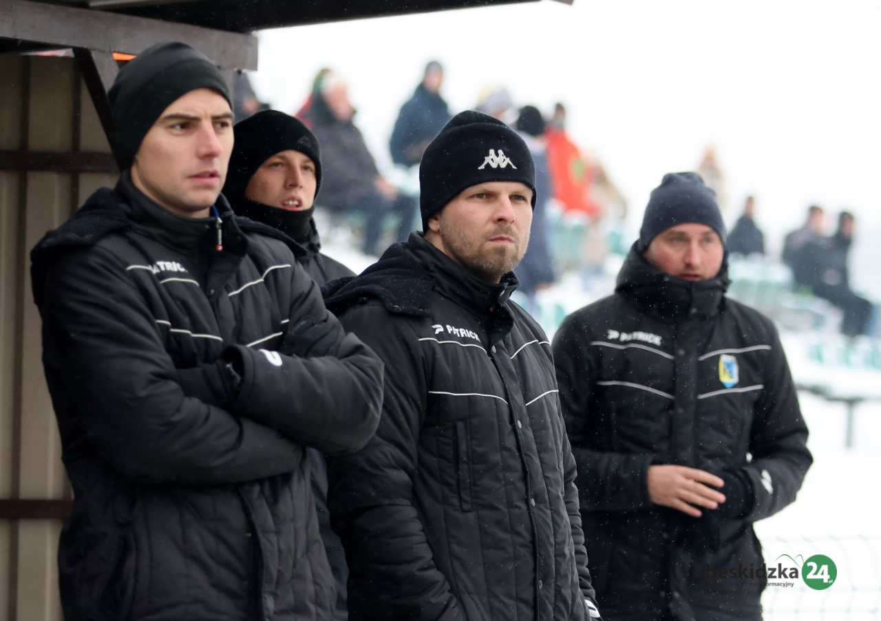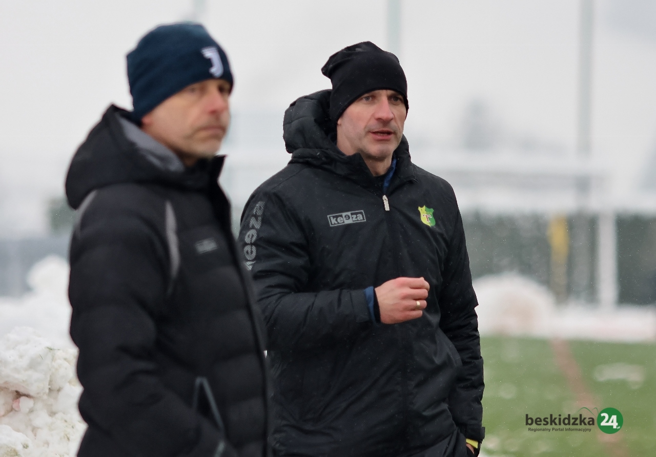 – Na szczęście nic nie zdarza się dwa razy, bo przez moment wydawało się, że ten mecz może się skończyć, jak przed rokiem, kiedy prowadziliśmy, a rywal odwrócił losy meczu. Pierwsza połowa była pod naszą kontrolą i myślę, że powinno paść w niej więcej bramek dla nas. Natomiast jak przez całą rundę mieliśmy problem ze strzelaniem i wykończeniem naszych sytuacji. Po przerwie przeciwnik ruszył agresywniej, chciał wyżej odbierać piłkę, a my parę razy nadzialiśmy się na kontrę. Po jednej z nich straciliśmy bramkę i przeciwnik poczuł przysłowiową krew. Natomiast wróciliśmy do meczu, graliśmy spokojnie, budowaliśmy swoje akcje i w końcówce udało nam się strzelić te dwie bramki. Na pewno gospodarzom należy się szacunek za walkę i za to, że przygotowali boisko w tak trudnych warunkach pogodowych. Naprawdę kupę serca i zaangażowania włożyli, żebyśmy mogli dzisiaj rozegrać ten mecz, za co dziękujemy – powiedział Karol Sieński, trener Kuźni.