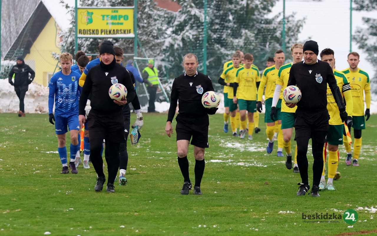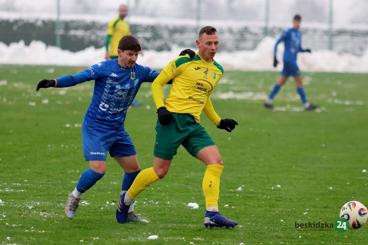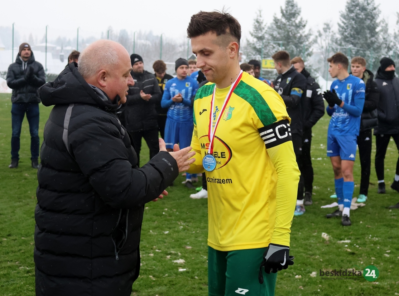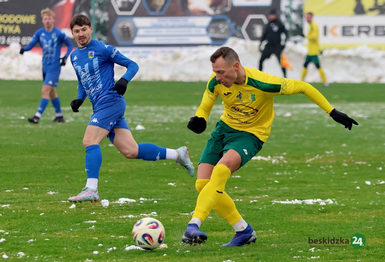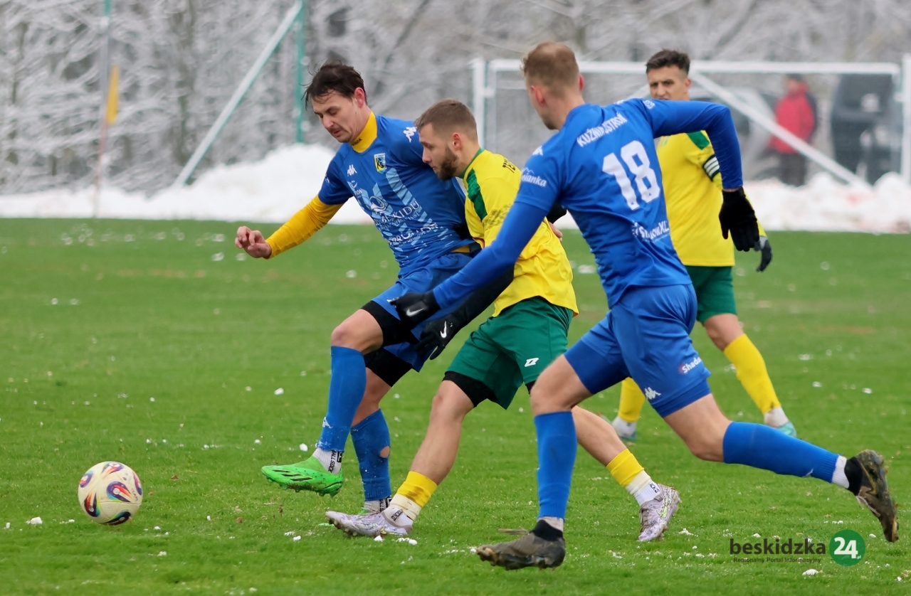 – Na szczęście nic nie zdarza się dwa razy, bo przez moment wydawało się, że ten mecz może się skończyć, jak przed rokiem, kiedy prowadziliśmy, a rywal odwrócił losy meczu. Pierwsza połowa była pod naszą kontrolą i myślę, że powinno paść w niej więcej bramek dla nas. Natomiast jak przez całą rundę mieliśmy problem ze strzelaniem i wykończeniem naszych sytuacji. Po przerwie przeciwnik ruszył agresywniej, chciał wyżej odbierać piłkę, a my parę razy nadzialiśmy się na kontrę. Po jednej z nich straciliśmy bramkę i przeciwnik poczuł przysłowiową krew. Natomiast wróciliśmy do meczu, graliśmy spokojnie, budowaliśmy swoje akcje i w końcówce udało nam się strzelić te dwie bramki. Na pewno gospodarzom należy się szacunek za walkę i za to, że przygotowali boisko w tak trudnych warunkach pogodowych. Naprawdę kupę serca i zaangażowania włożyli, żebyśmy mogli dzisiaj rozegrać ten mecz, za co dziękujemy – powiedział Karol Sieński, trener Kuźni.