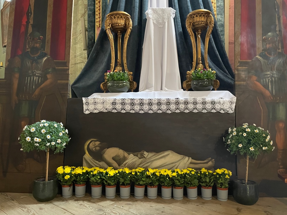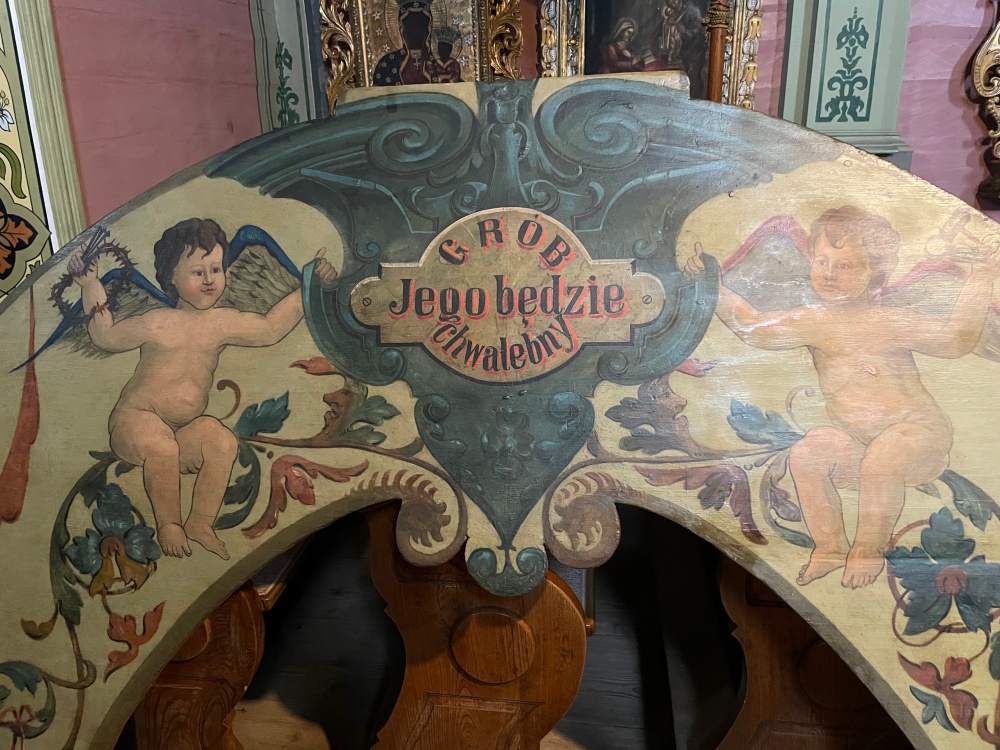 „Druga część grobu, mniejsza i wykorzystywana przez lata w liturgii Triduum Paschalnego, nie zachowała się w tak dobrym stanie. Tworzy ją edikula przeznaczona do wystawienia Najświętszego Sakramentu, poprzedzona dekoracyjną ścianką z przedstawieniami adorujących aniołów. Niestety późniejsze ingerencje i przemalowania doprowadziły do utraty jej pierwotnych walorów estetycznych” – dodaje kapłan i przypomina, że przed reformą liturgiczną Soboru Watykańskiego II obie części grobu ustawiano razem na głównym ołtarzu, tworząc imponującą całość, która – jak wspominają najstarsi parafianie – robiła ogromne wrażenie.