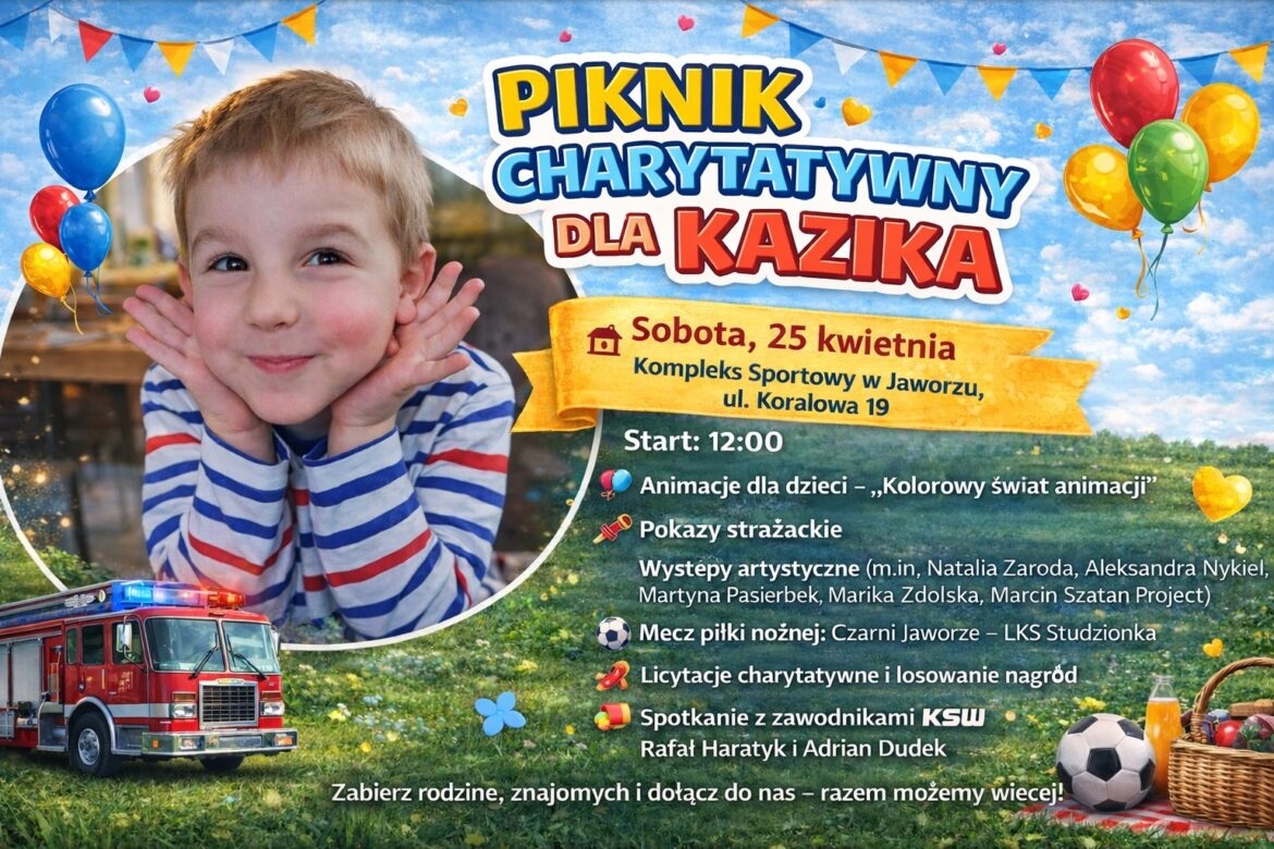 Animacje dla dzieci, występy muzyczne, pokazy strażackie i mecz piłki nożnej. Te i inne atrakcje będą czekały na gości w Jaworzu już w najbliższą sobotę, 25 kwietnia. Wszystko w ramach „Pikniku charytatywnego dla Kazika”.