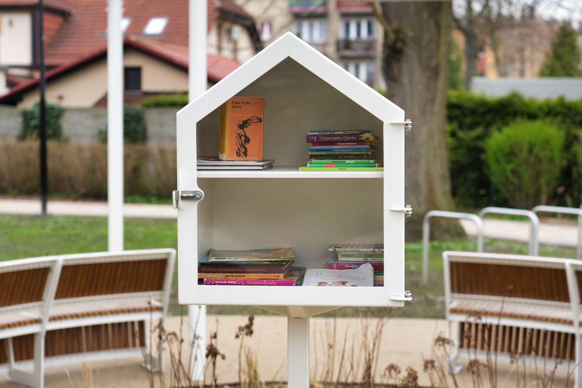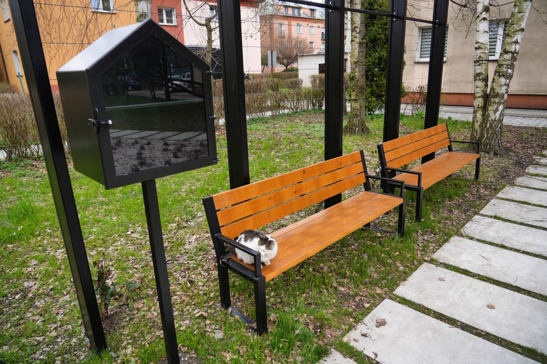 W parku przy ul. Żeromskiego biblioteczka jest już obficie wypełniona. Można tam znaleźć zarówno literaturę dziecięcą, jak i książki dla dorosłych czytelników, i sięgnąć choćby po wybitny „Zamek” Franza Kafki. Z kolei przy ul. Barabasza na czytelników czeka dodatkowa atrakcja. To biało-bury, miękki i łaszący się towarzysz lektury, który z przyjemnością zamruczy podczas czytania na świeżym powietrzu.