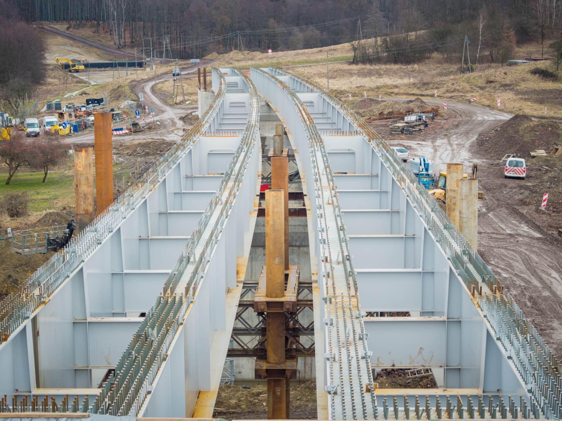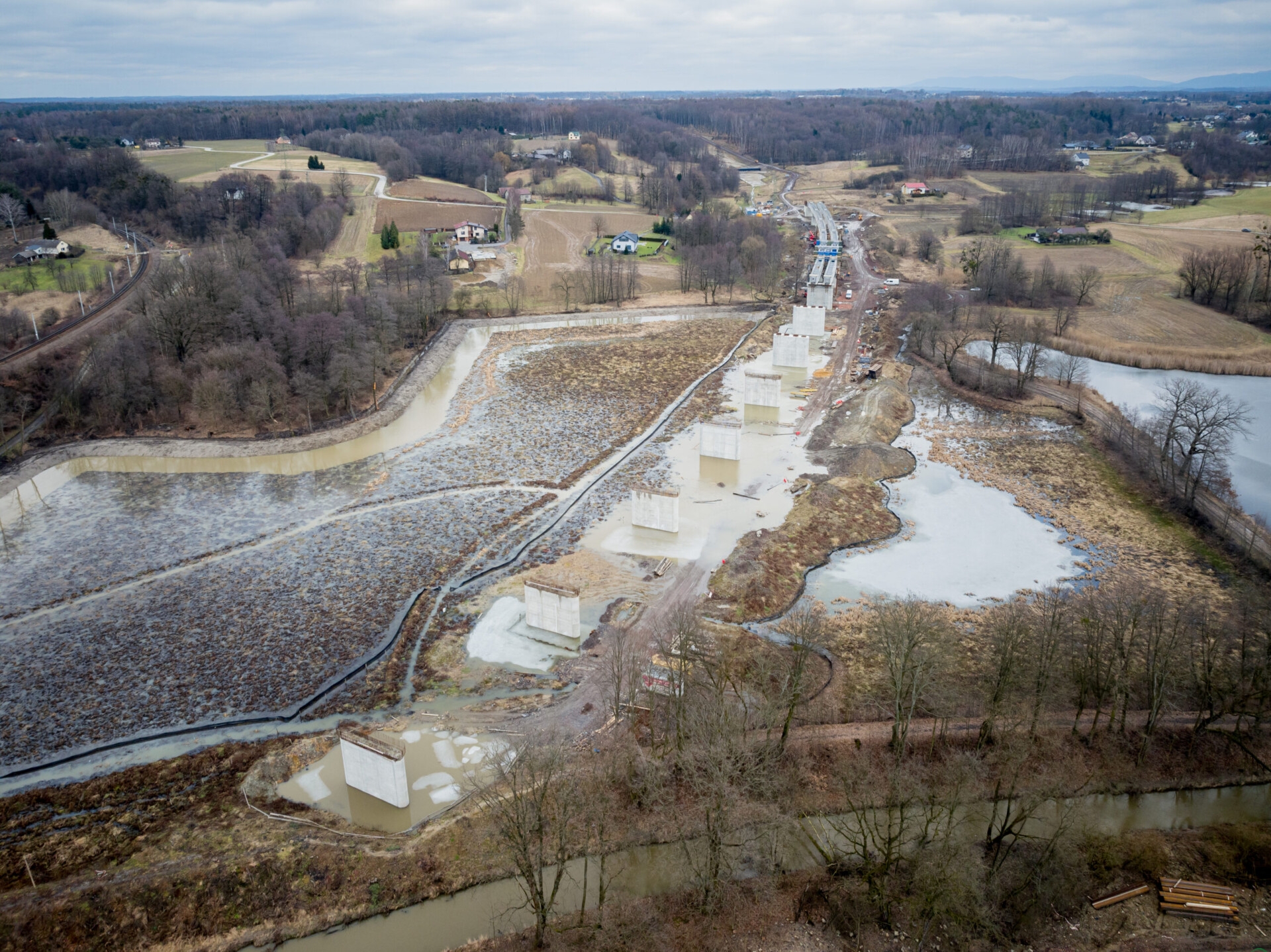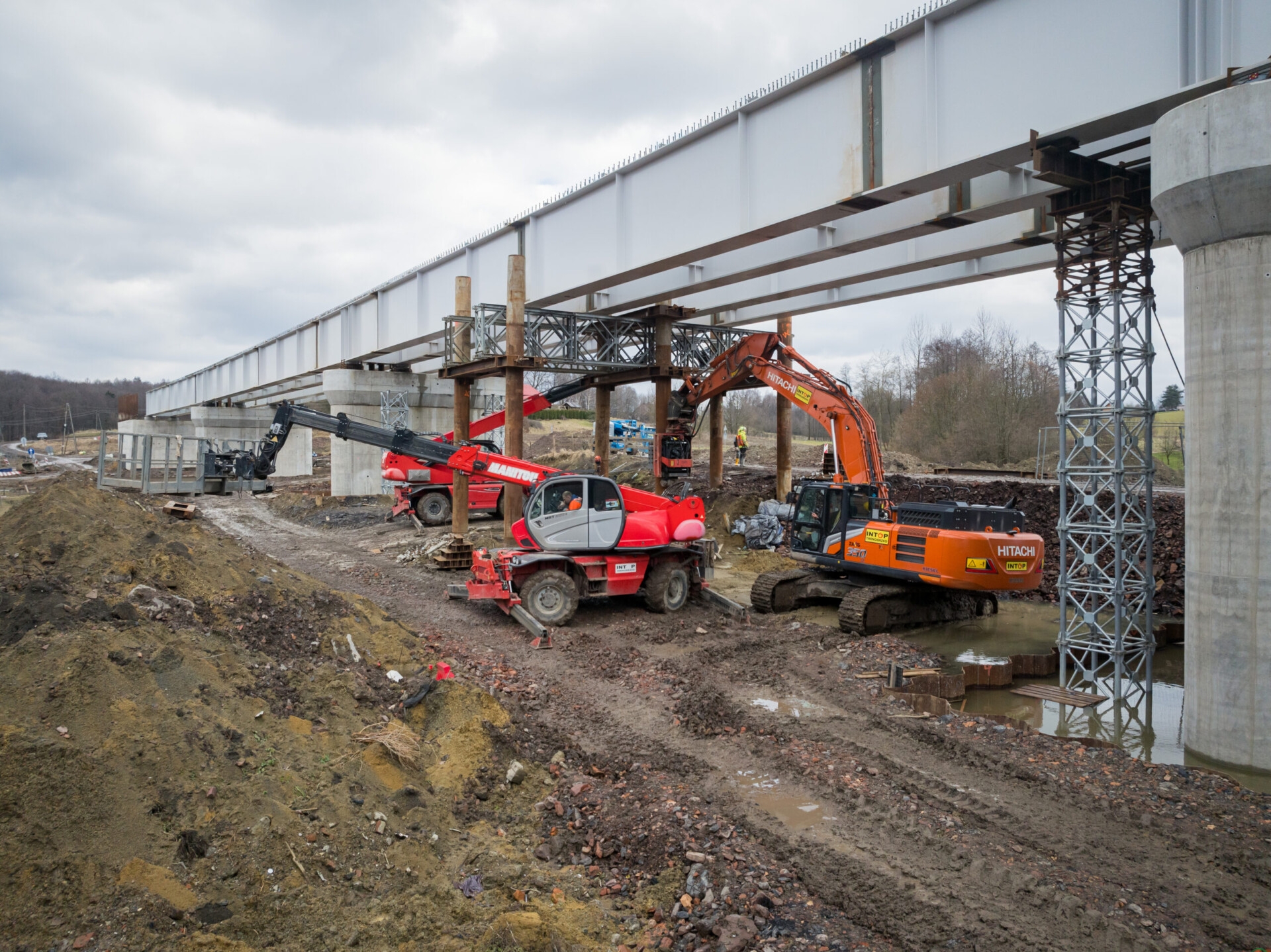 Powstaje ponad 600-metrowy most kolejowy w Zebrzydowicach. Realizująca inwestycję spółka PKP Polskie Linie Kolejowe zaprezentowała zdjęcia dokumentujące postęp prac.