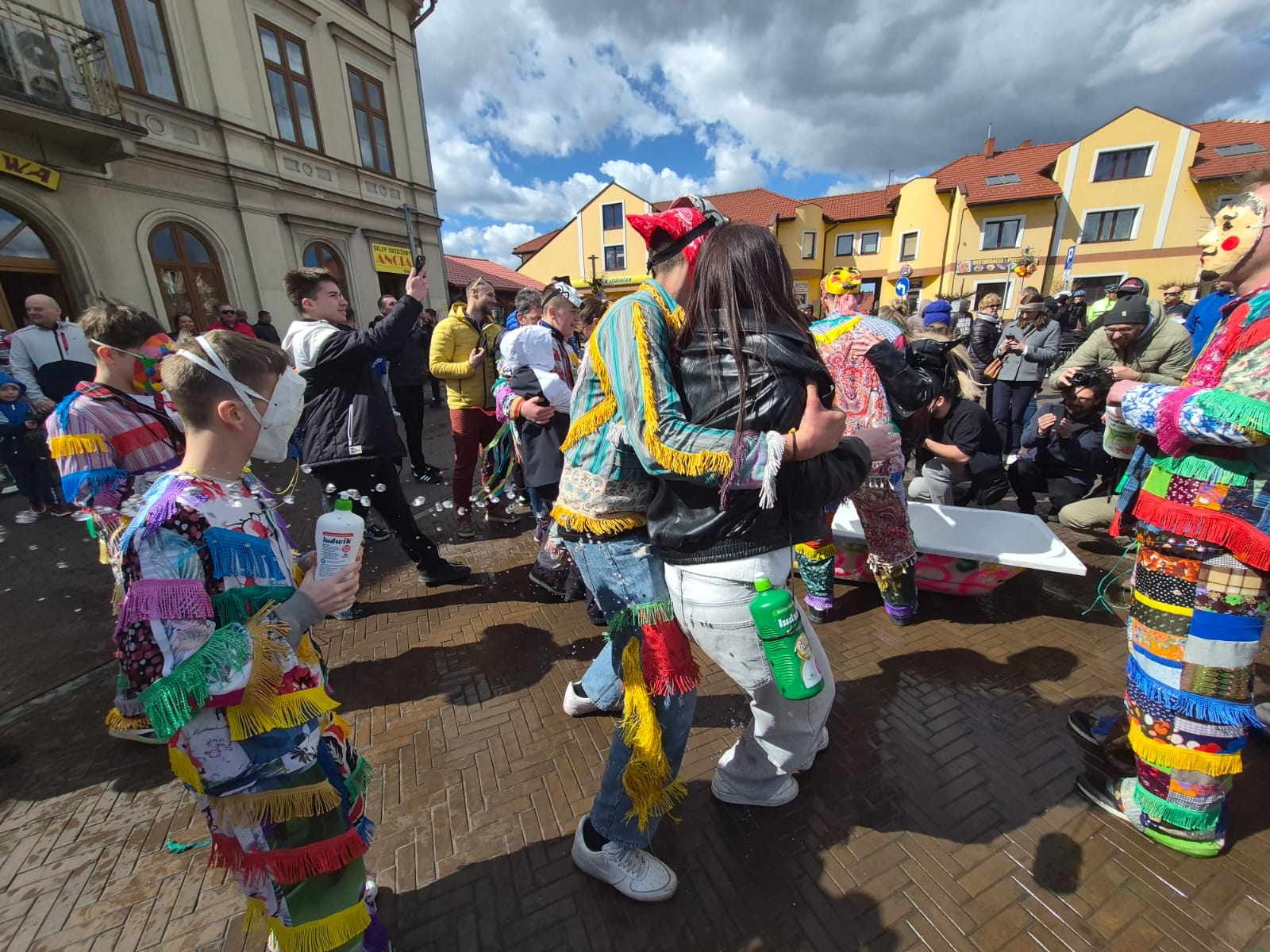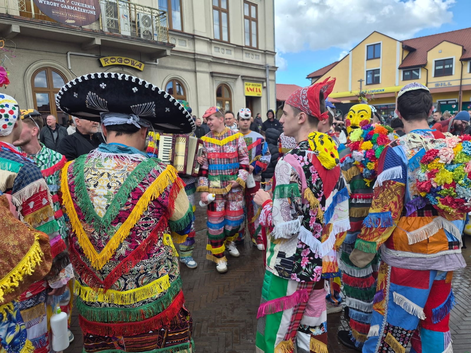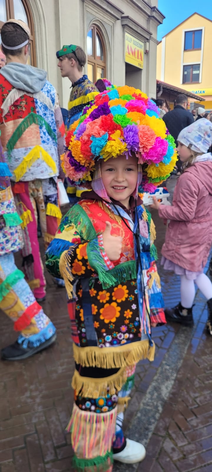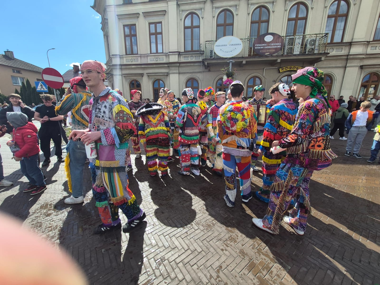 Wszystko zaczęło się zgodnie z wieloletnim rytuałem. Już od wczesnych godzin rannych na ulicach słychać było radosne nawoływania i dźwięki instrumentów. Śmiergustnicy – młodzi mężczyźni w swoich charakterystycznych, misternie przygotowanych strojach z kolorowych frędzli – nie dawali o sobie zapomnieć. W tym roku ich kostiumy w pełnym słońcu prezentowały się wyjątkowo okazale, tworząc niesamowitą mozaikę barw na tle wilamowickiej architektury.