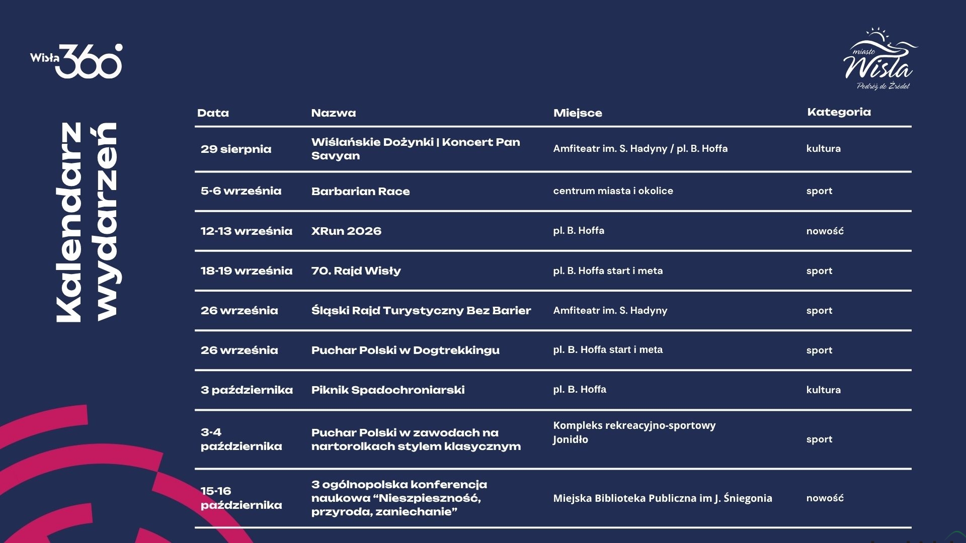 Wśród zapowiedzi znalazły się zarówno dobrze znane wydarzenia, jak i nowe propozycje, m.in. Festiwal Źródło Światła, XRun 2026, koncerty Wojtka Szumańskiego, Kasi Kowalskiej, Bass’a Astrala, Igo, Pana Savyan’a oraz otwarcie Beskidzkiego Centrum Narciarstwa im. Adama Małysza.