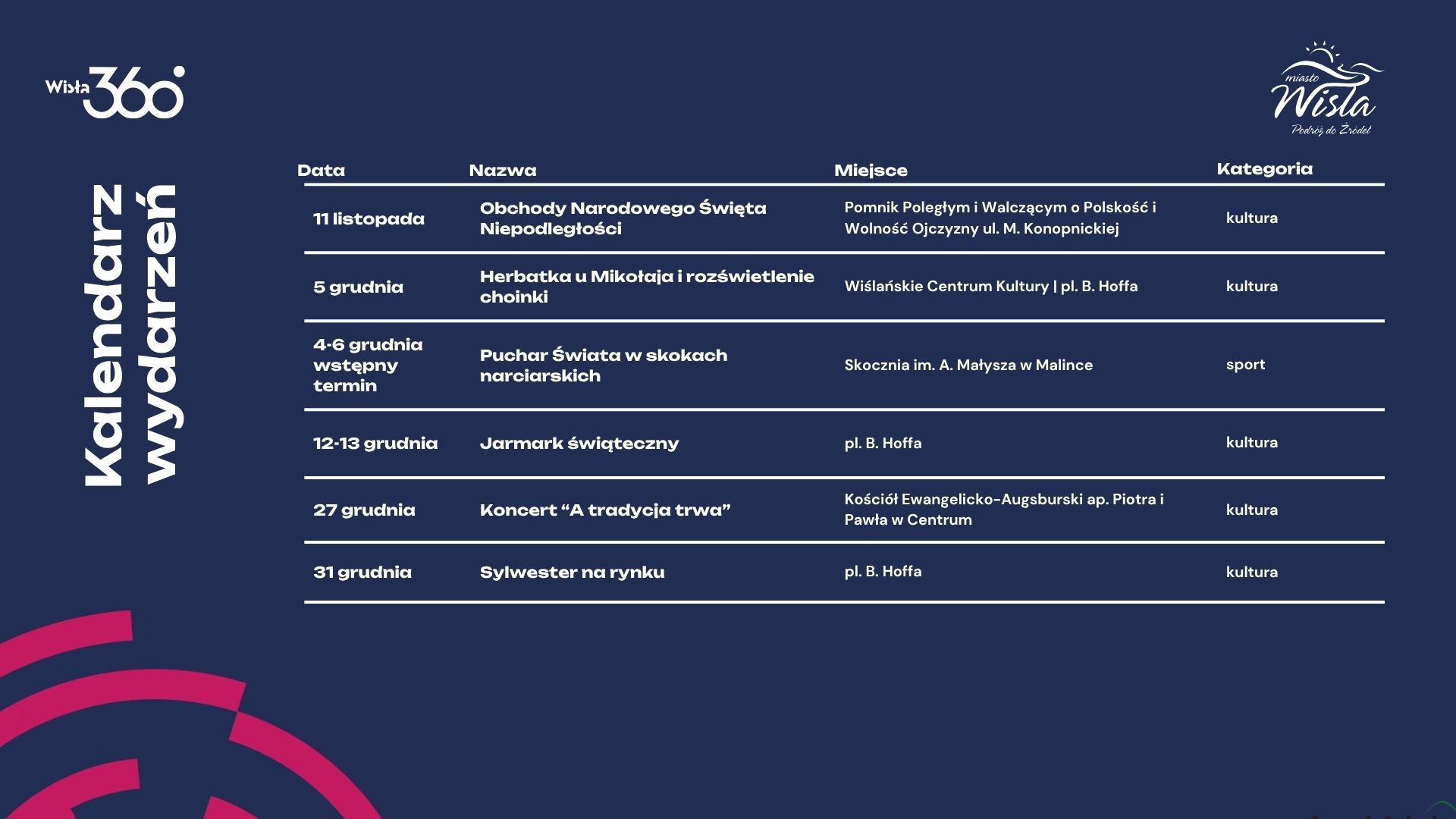 Zastępczyni burmistrza miasta Wisła Katarzyna Czyż-Kaźmierczak podkreślała: Kalendarz wydarzeń na cały rok to rzecz ogromnie trudna do ułożenia i udała się nam z tak wielką szczegółowością po raz pierwszy, ale mamy nadzieję, że nie ostatni. Pomoże to lepiej planować komunikację i promocję wydarzeń, jak i pozwoli odbiorcom z wyprzedzeniem zaplanować czas w naszym mieście.