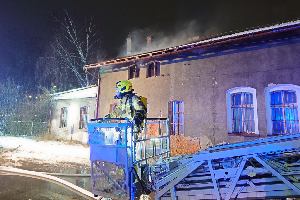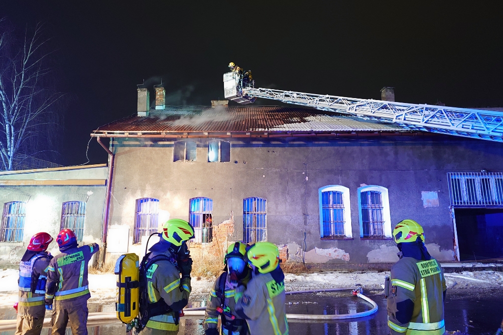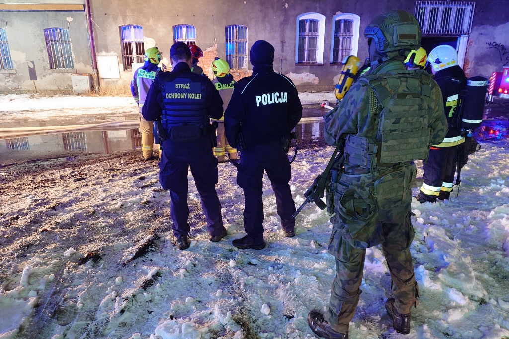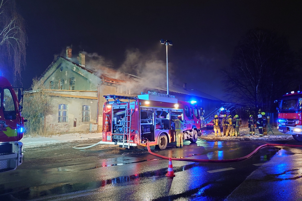 Wieczorem patrol straży miejskiej, współpracujący z Caritas przy rozwożeniu ciepłych posiłków dla osób bezdomnych, zauważył pożar w budynku przy ul. Towarowej w Czechowicach-Dziedzicach. Na miejsce natychmiast wysłano dziewięć zastępów straży pożarnej, pogotowie ratunkowe oraz policję.