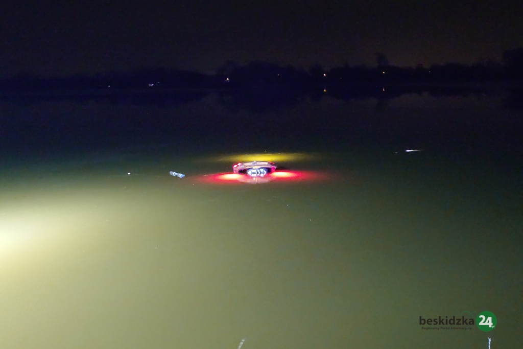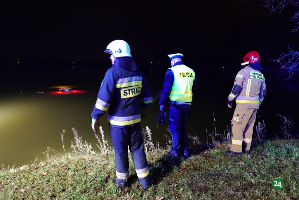 Zgłoszenie zdarzenia wpłynęło z WCPR o godz. 23.26. Po dojeździe na miejsce pierwszego zastępu straży pożarnej okazało się, że samochód jest zanurzony w wodzie około 20 metrów od brzegu. Strażaków poinformowano, że kierowca z tego pojazdu jest w innym aucie, na brzegu. Mężczyznę przekazano pod opiekę zespołu ratownictwa medycznego. Działania strażaków w pierwszej fazie akcji polegały na zabezpieczeniu miejsca zdarzenia i sprawdzeniu pojazdu pod kątem innych osób poszkodowanych, w tym celu wykorzystano łódź.