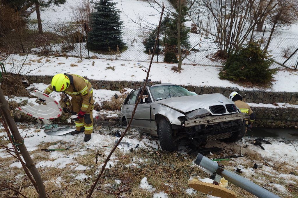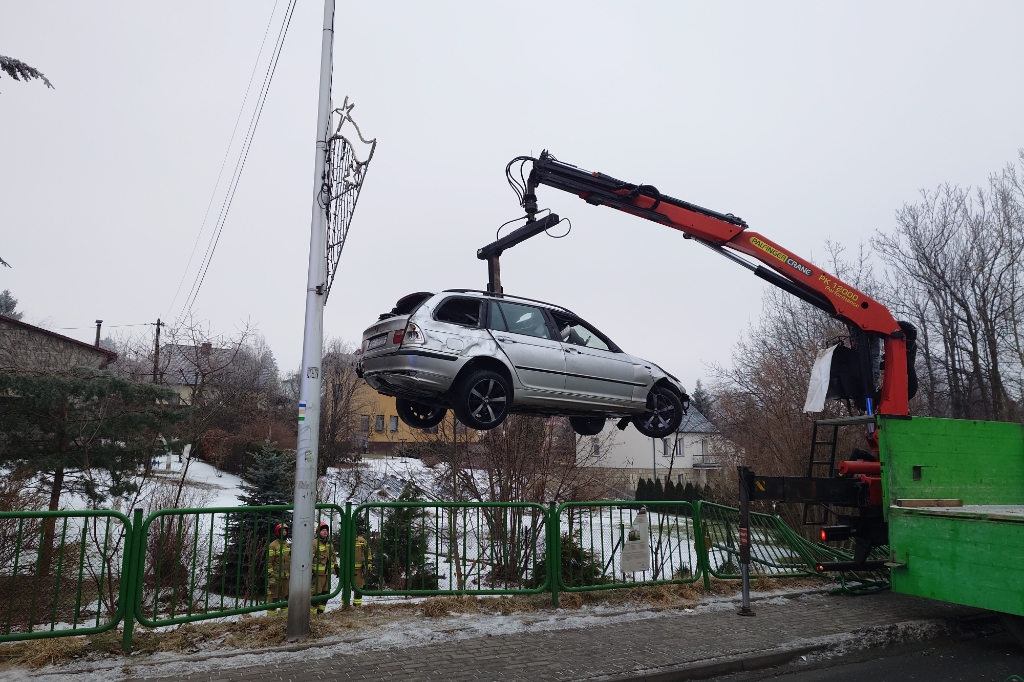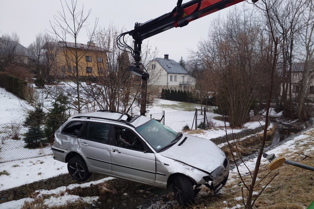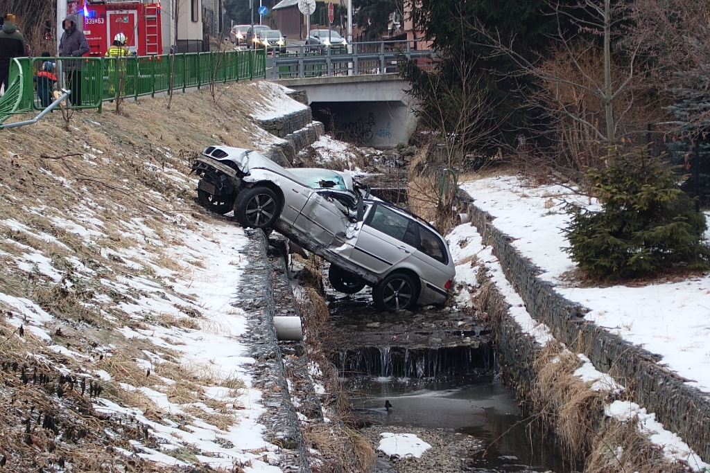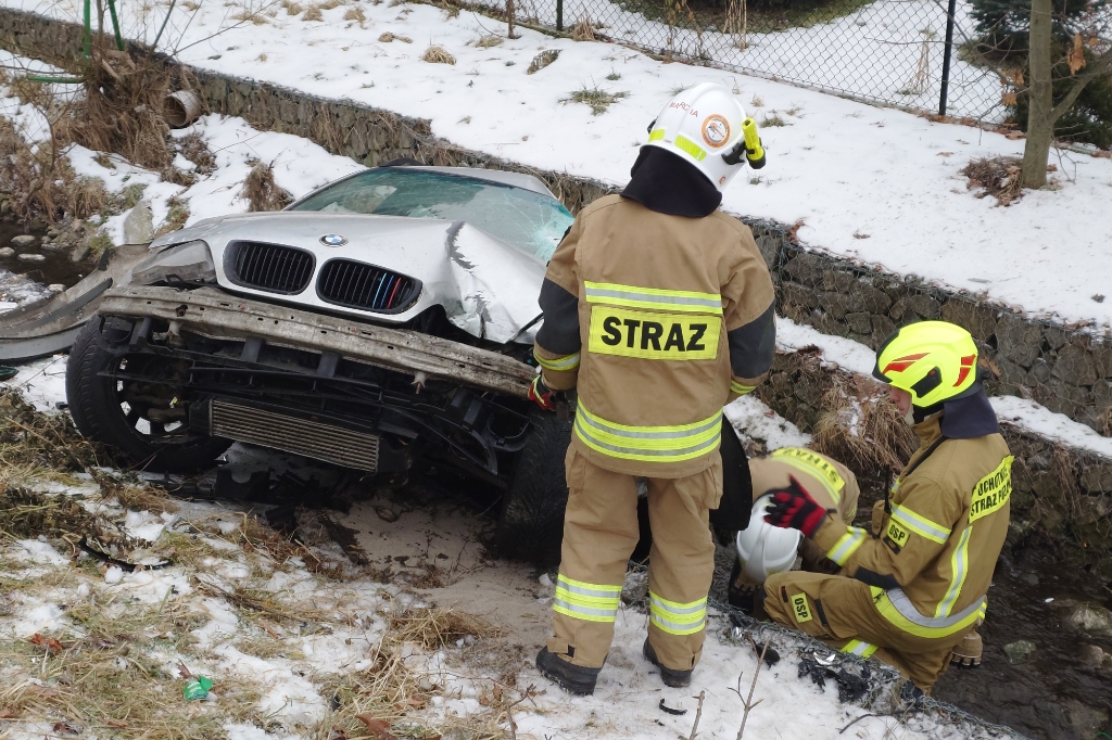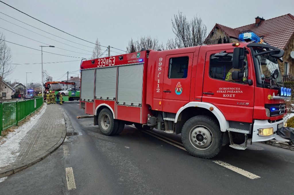 Wszystkie służby wysłano po otrzymaniu zgłoszenia, z którego wynikało, iż samochód wpadł do koryta potoku przy ul. Beskidzkiej w Kozach. Do szpitala odwieziono kobietę.