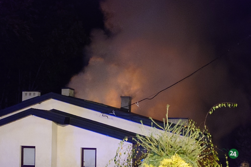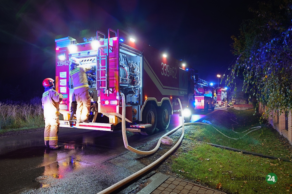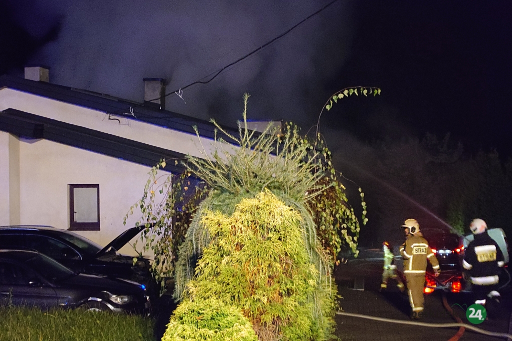 Jedno ze zgłoszeń wpłynęło z WCPR o godz. 19.37. Po dojeździe na miejsce okazało się, że pożarem objęty jest duży garaż przylegający do budynku mieszkalnego, w garażu palą się cztery samochody.