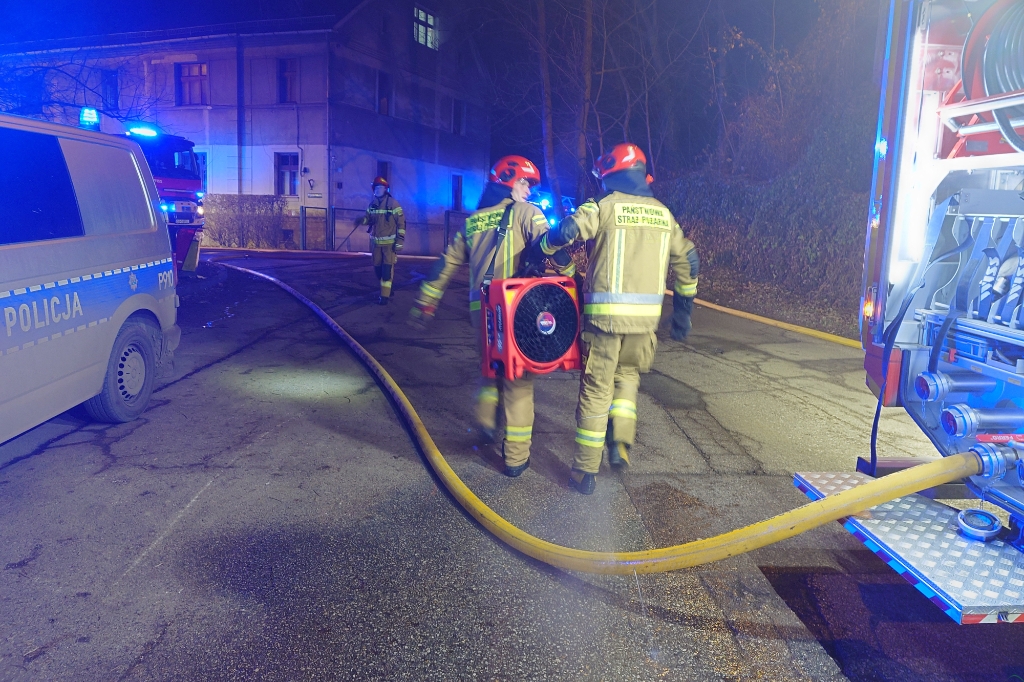 Zgłoszenie pożaru wpłynęło do służb ratunkowych w piątek o godz. 22.29. – Okazało się, że pożarem objęte jest mieszkanie na pierwszym piętrze, lokatorzy w liczbie około 12 osób opuścili budynek przed naszym przybyciem – powiedział nam st. kpt. Paweł Nycz z JRG1 w Bielsku-Białej. – Klatka schodowa tego budynku i część mieszkań były silnie zadymione. Nikomu nic się nie stało, ale lokator mieszkania objętego ogniem został zabrany do szpitala w celu przebadania – dodał nasz rozmówca.