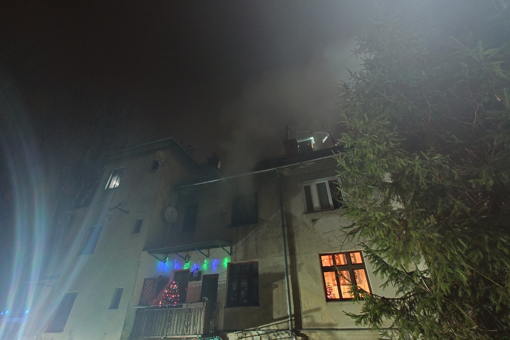 Kłęby dymu wydobywały się w drugi dzień świąt Bożego Narodzenia z mieszkania w budynku wielorodzinnym przy ul. Żywieckie Przedmieście w Bielsku-Białej. Trzy zespoły ratownictwa medycznego przebadały pięć osób. Do szpitala odwieziono lokatora mieszkania objętego pożarem.