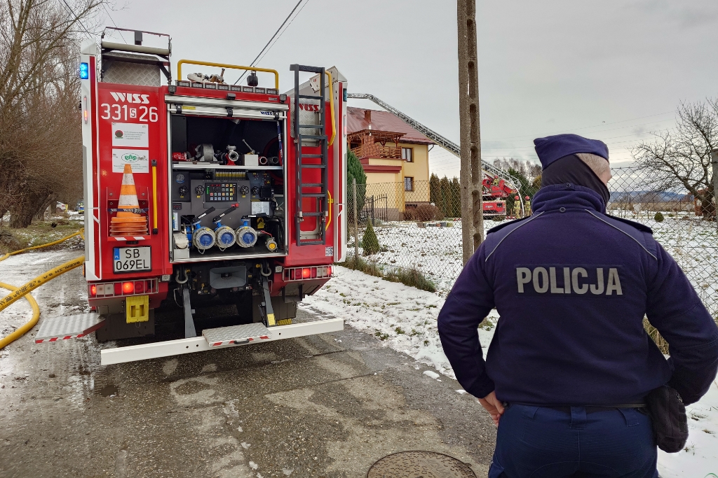Trwają czynności służb. Prowadzą je strażacy (sześć zastępów) i policjanci.