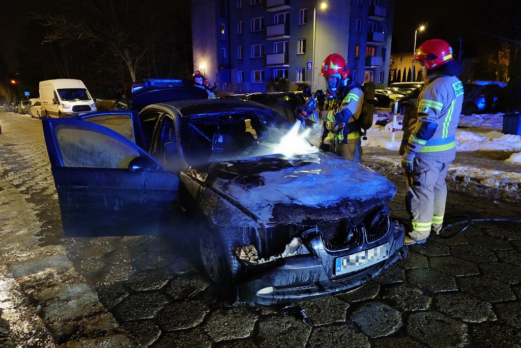 Zgłoszenie pożaru wpłynęło z WCPR o godz. 23.55. Samochodem kierowała kobieta. W pewnym momencie zobaczyła dym, zdążyła wysiąść. Działania zastępów straży pożarnej polegały na zabezpieczeniu miejsca zdarzenia i podaniu jednego prądu wody. Po ugaszeniu pożaru przelano komorę silnika pojazdu i sprawdzono kamerą termowizyjną. Wskutek pożaru spłonęła część kabiny i komory silnika auta.