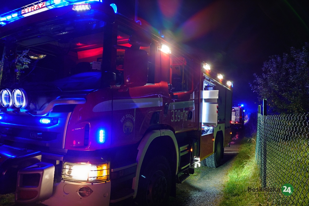 Zgłoszenie pożaru wpłynęło z WCPR o godz. 2.00. – Zostaliśmy wysłani do pożaru poddasza w budynku letniskowym. Po dojeździe na miejsce okazało się, że od kominka zapaliło się ocieplenie i konstrukcja dachu w pobliżu komina. Na szczęście pożar udało się zlokalizować bez rozbierania dachu, wycięliśmy tylko kawałek ścianki działowej i ocieplenia. Zespół ratownictwa medycznego przebadał kobietę, która uskarżała się na ból głowy, nie było konieczności hospitalizacji – powiedział nam mł. bryg. Marcin Rutkowski z JRG1 w Bielsku-Białej
