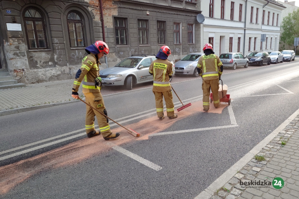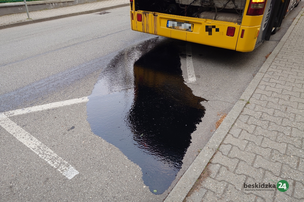 Około dwóch kilometrów długości miała plama oleju z autobusu MZK, wyciek zauważył patrol straży miejskiej. Autobus zatrzymano na przystanku przy ul. Wyspiańskiego w Bielsku-Białej, był to dziś pierwszy kurs tego pojazdu.