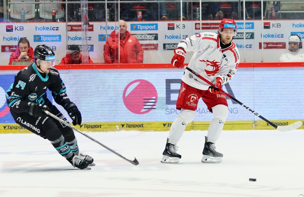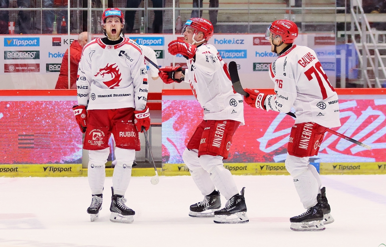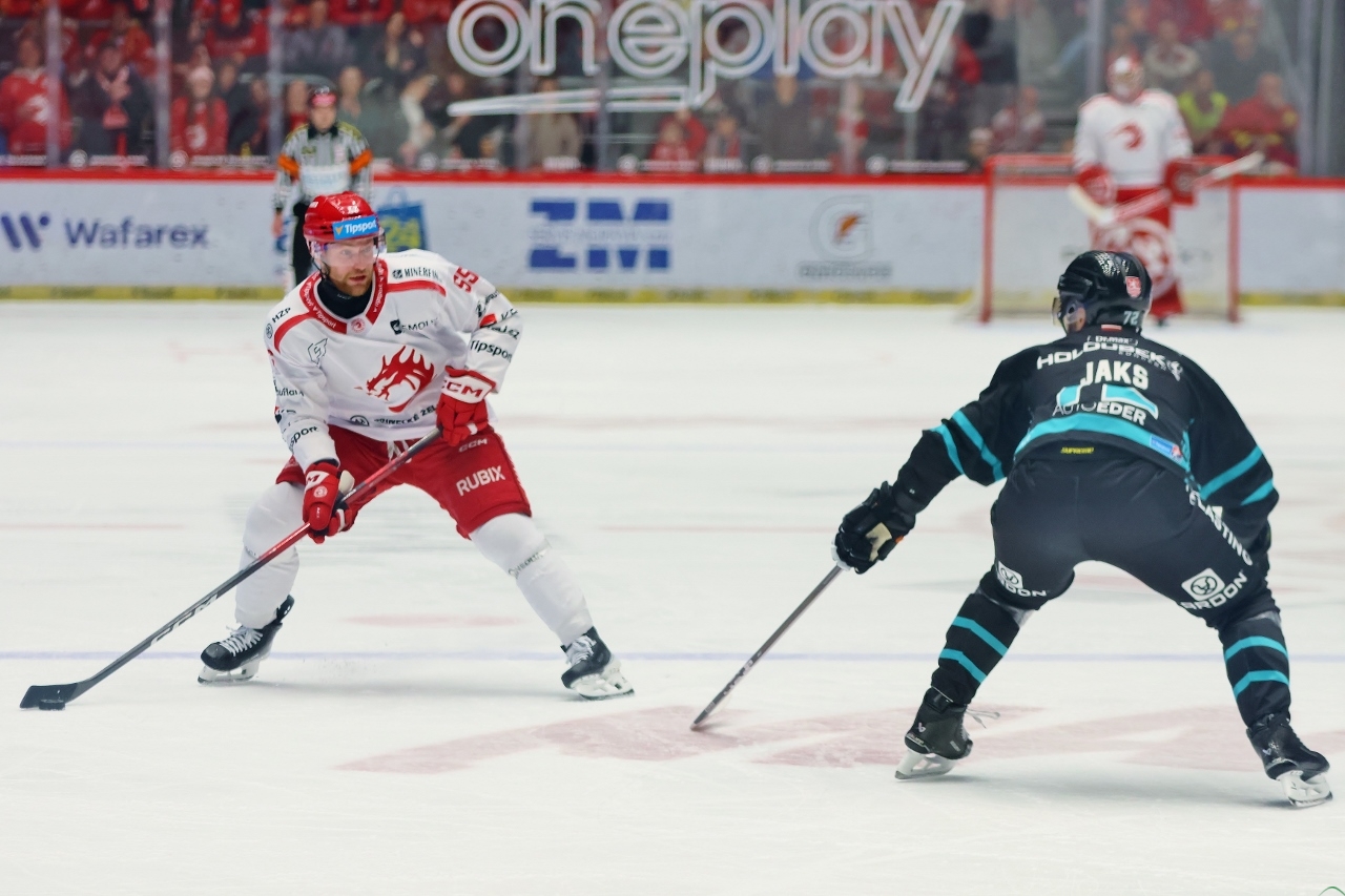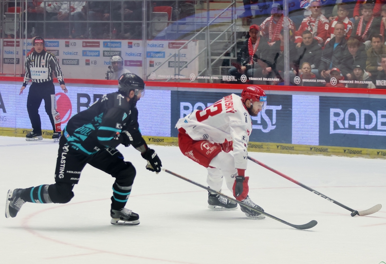 Po zmianie stron zespół z Karlowych War nie odpuszczał i w 27. minucie prowadził już trzema golami. Tym razem David Šťastný wpisał się do meczowego protokołu, a trener Boris Žabka zareagował zmianą bramkarza. W “klatce” pojawił się Ondřej Kacetl i już do końca nie dał się pokonać. Tymczasem prawdziwy wstrząs dla rywali przyniosła końcówka drugiej tercji. W odstępstwie zaledwie 2 minut i 11 sekund Trzyńczanie zdobyli trzy gole, doprowadzając do remisu 4:4! Zaczął w 38. minucie Andrej Nestrašil, a w 40. po bramce dołożyli David Cienciala i Tomáš Kundrátek.