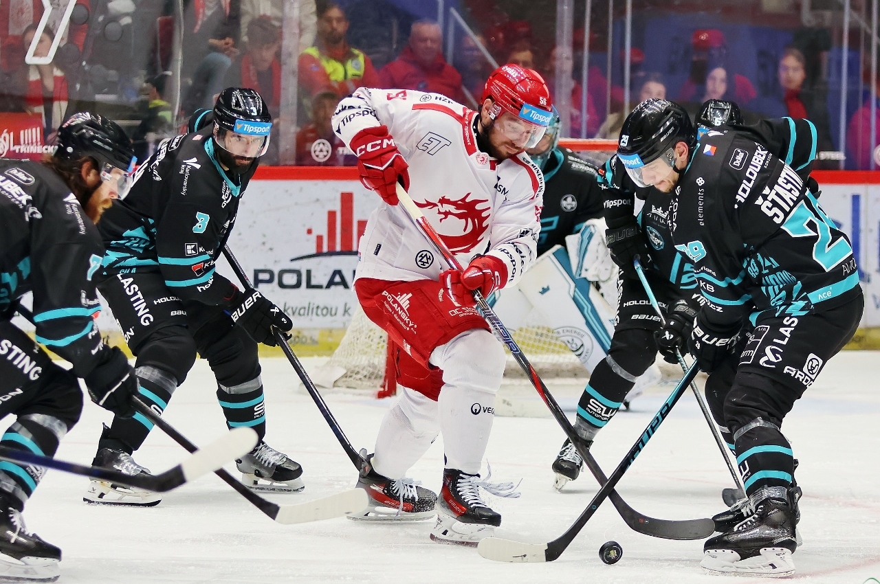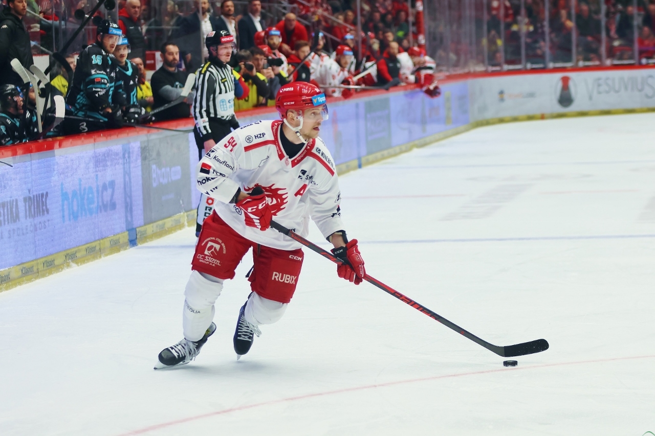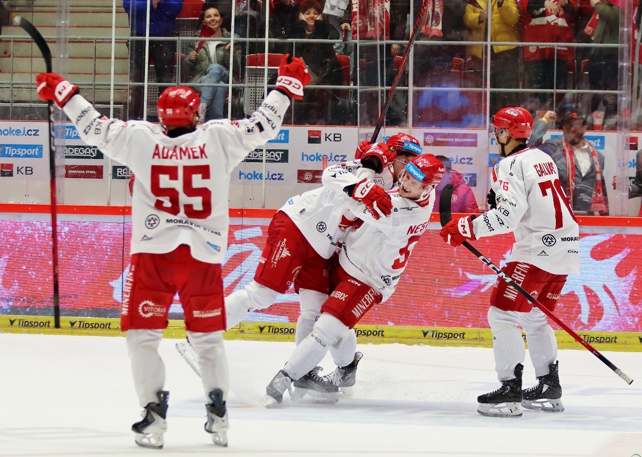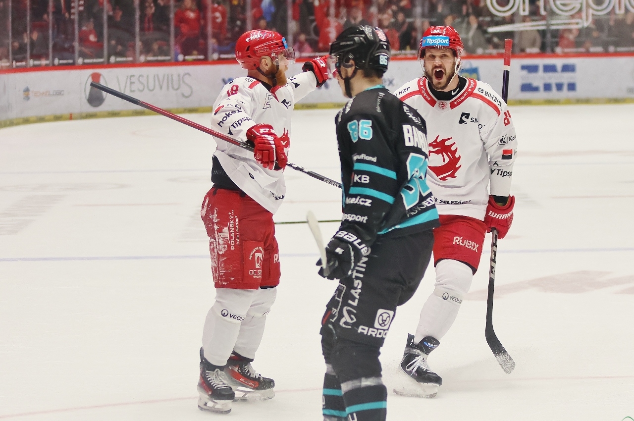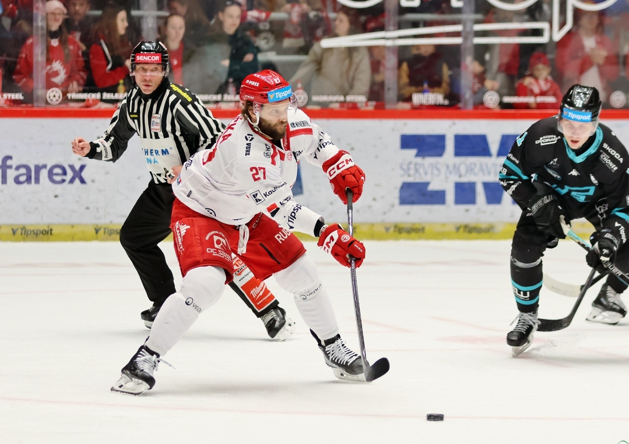 Po zmianie stron zespół z Karlowych War nie odpuszczał i w 27. minucie prowadził już trzema golami. Tym razem David Šťastný wpisał się do meczowego protokołu, a trener Boris Žabka zareagował zmianą bramkarza. W “klatce” pojawił się Ondřej Kacetl i już do końca nie dał się pokonać. Tymczasem prawdziwy wstrząs dla rywali przyniosła końcówka drugiej tercji. W odstępstwie zaledwie 2 minut i 11 sekund Trzyńczanie zdobyli trzy gole, doprowadzając do remisu 4:4! Zaczął w 38. minucie Andrej Nestrašil, a w 40. po bramce dołożyli David Cienciala i Tomáš Kundrátek.