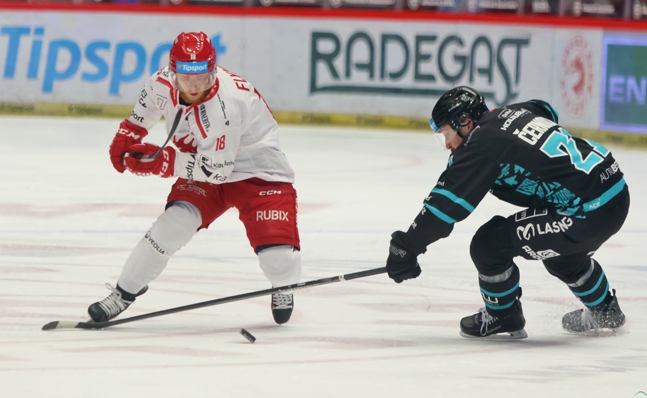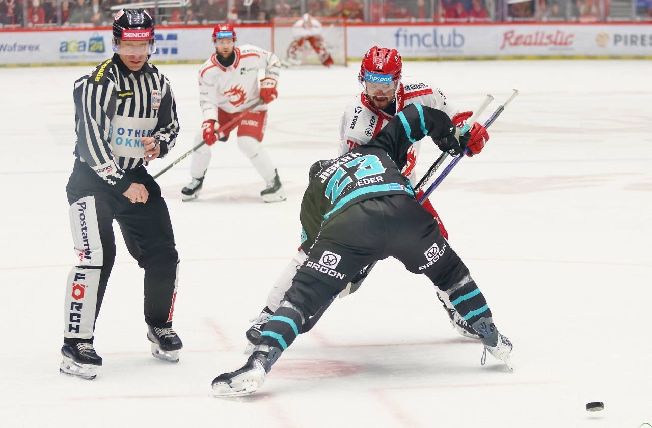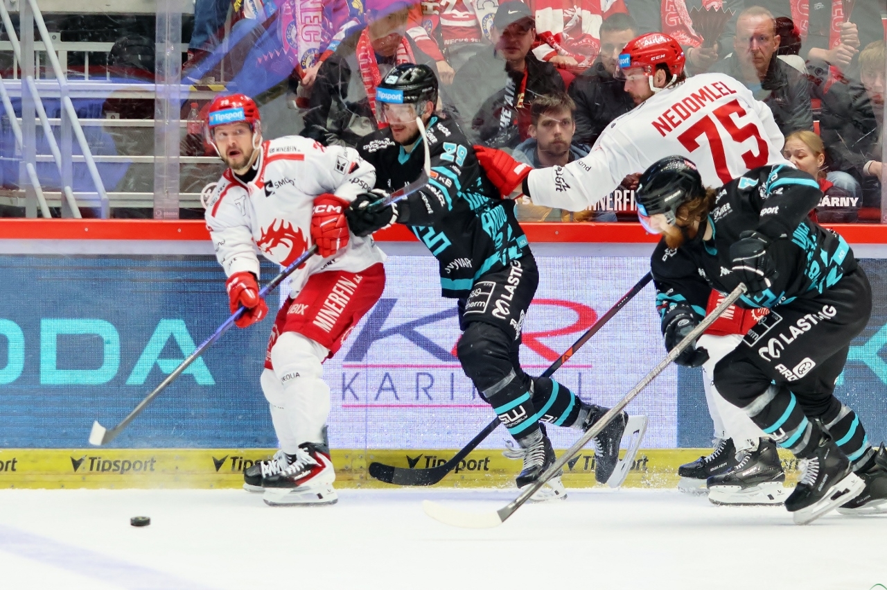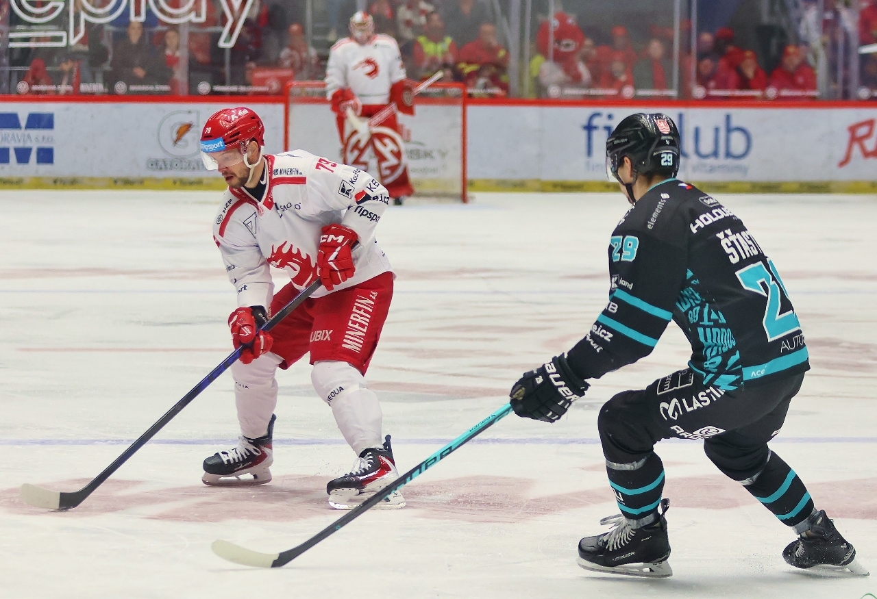Po zmianie stron zespół z Karlowych War nie odpuszczał i w 27. minucie prowadził już trzema golami. Tym razem David Šťastný wpisał się do meczowego protokołu, a trener Boris Žabka zareagował zmianą bramkarza. W “klatce” pojawił się Ondřej Kacetl i już do końca nie dał się pokonać. Tymczasem prawdziwy wstrząs dla rywali przyniosła końcówka drugiej tercji. W odstępstwie zaledwie 2 minut i 11 sekund Trzyńczanie zdobyli trzy gole, doprowadzając do remisu 4:4! Zaczął w 38. minucie Andrej Nestrašil, a w 40. po bramce dołożyli David Cienciala i Tomáš Kundrátek.