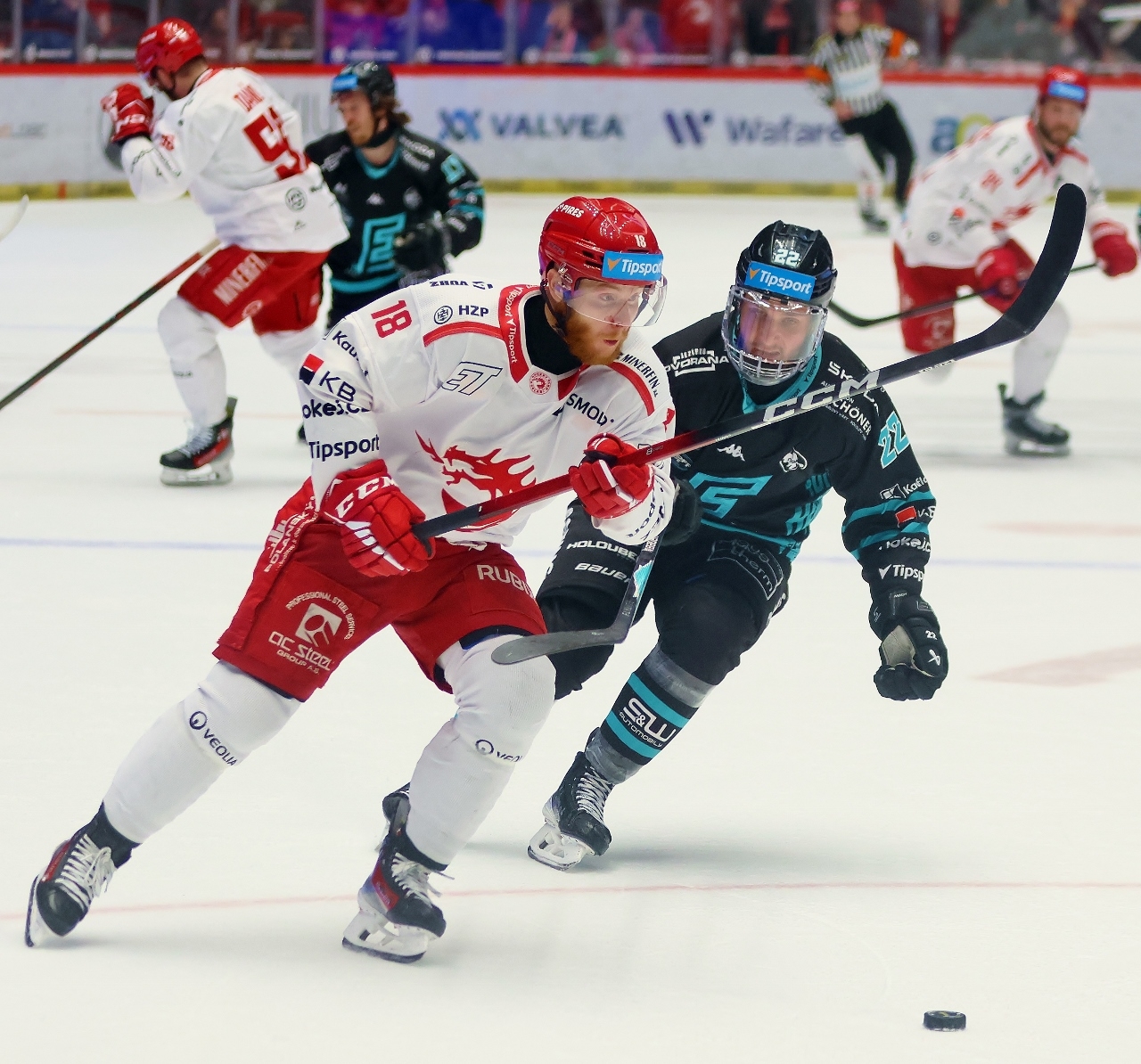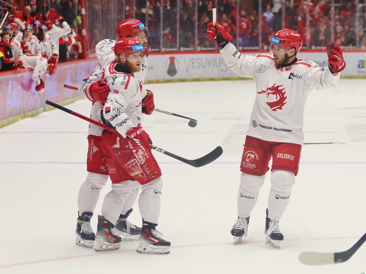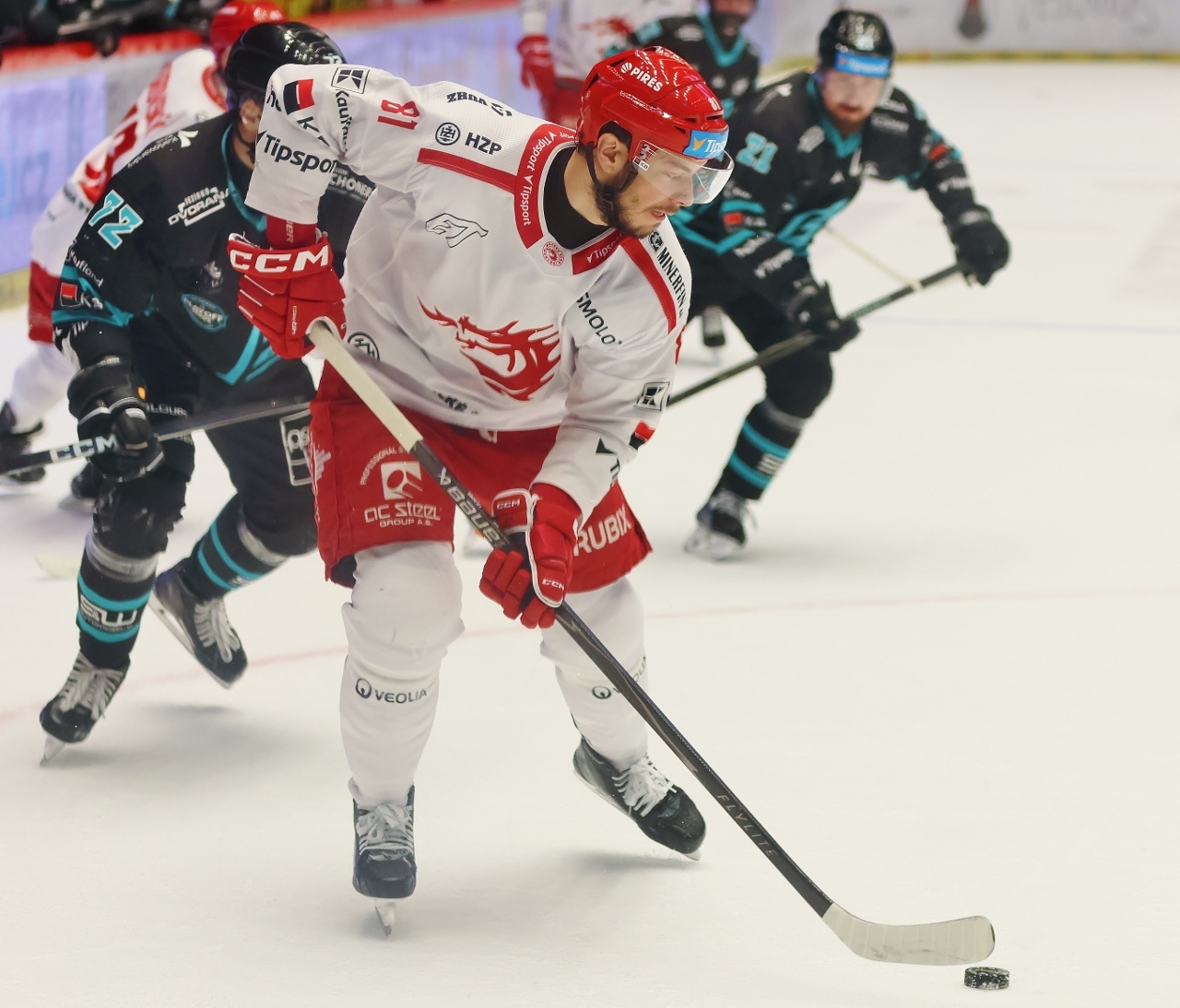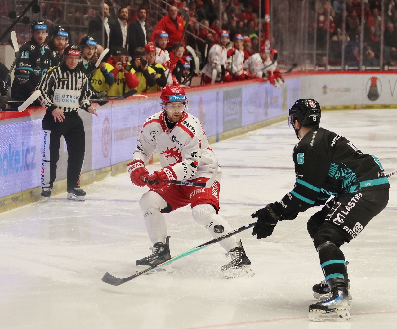 Po zmianie stron zespół z Karlowych War nie odpuszczał i w 27. minucie prowadził już trzema golami. Tym razem David Šťastný wpisał się do meczowego protokołu, a trener Boris Žabka zareagował zmianą bramkarza. W “klatce” pojawił się Ondřej Kacetl i już do końca nie dał się pokonać. Tymczasem prawdziwy wstrząs dla rywali przyniosła końcówka drugiej tercji. W odstępstwie zaledwie 2 minut i 11 sekund Trzyńczanie zdobyli trzy gole, doprowadzając do remisu 4:4! Zaczął w 38. minucie Andrej Nestrašil, a w 40. po bramce dołożyli David Cienciala i Tomáš Kundrátek.