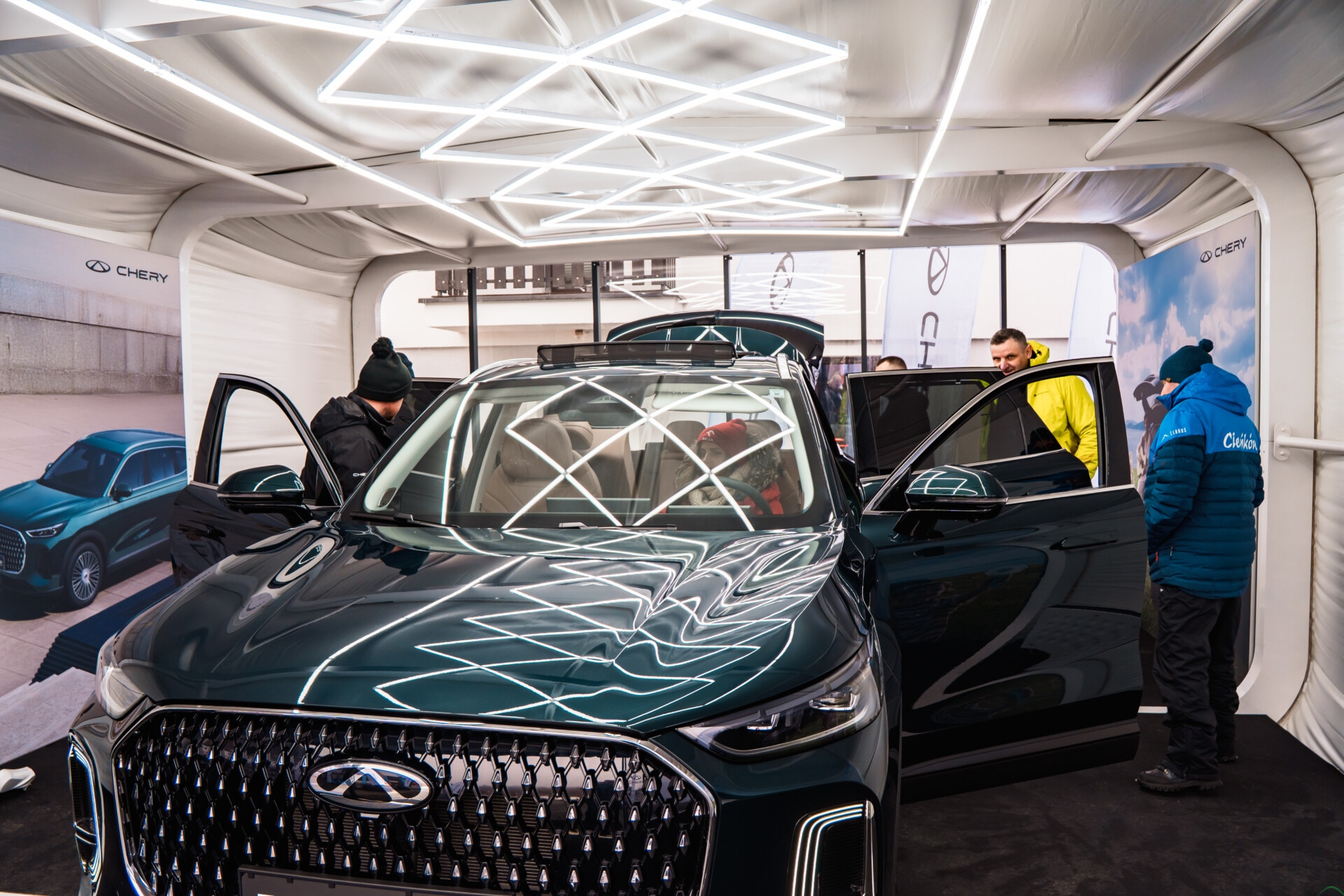 Centralnym punktem strefy CHERY był model TIGGO 9 PHEV – siedmiomiejscowy SUV z napędem AWD i układem CHERY Super Hybrid (PHEV), łączącym silnik spalinowy z elektrycznym. Producent podkreśla, że to konfiguracja zaprojektowana z myślą o długich trasach, zimowych wyjazdach i zmiennych warunkach drogowych.